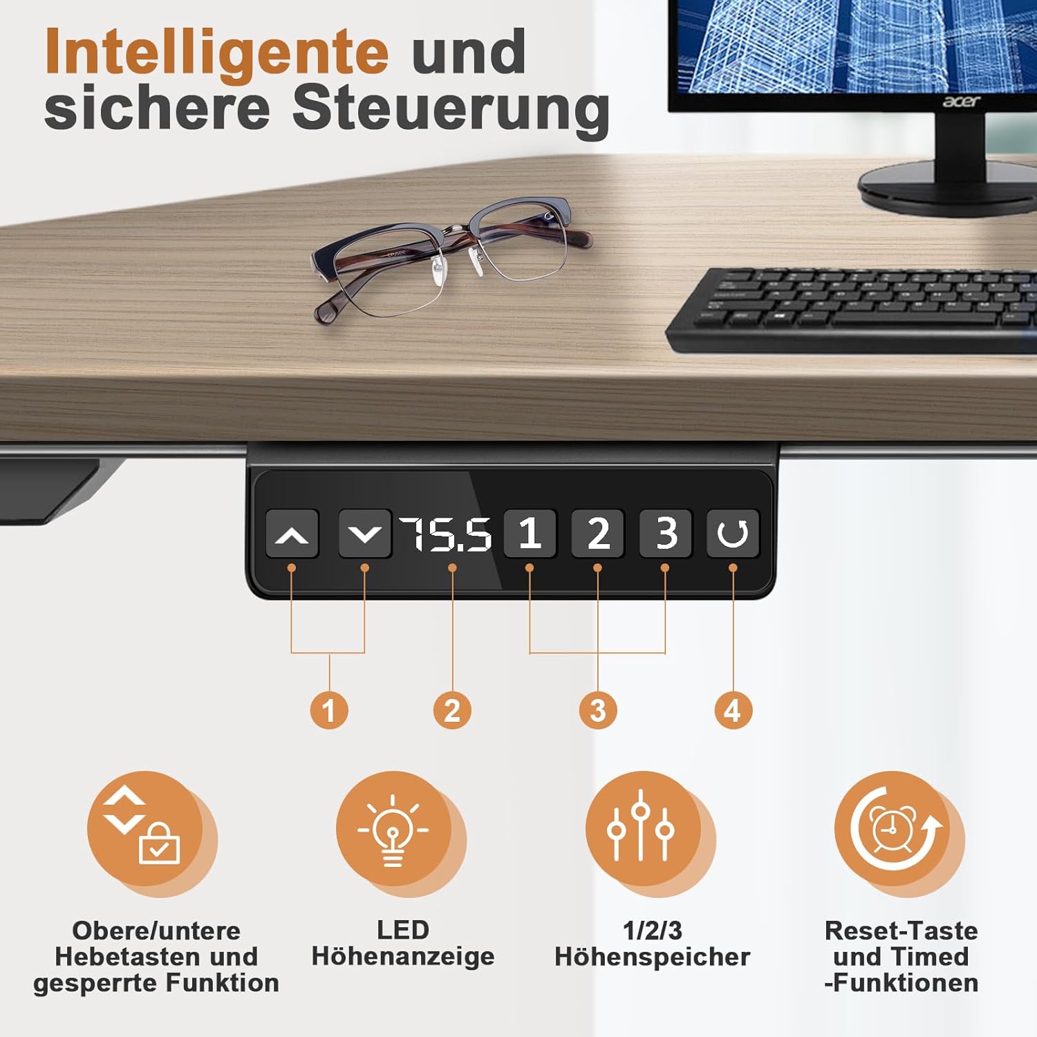 - Versatile design: it has 3 memory slots to store your preferred height settings; it can be set timed reminders, and a parental lock is included for protection. It can be reset, locked and unlocked at the touch of a button.