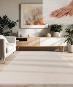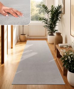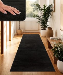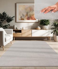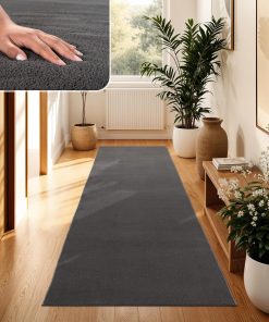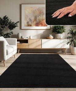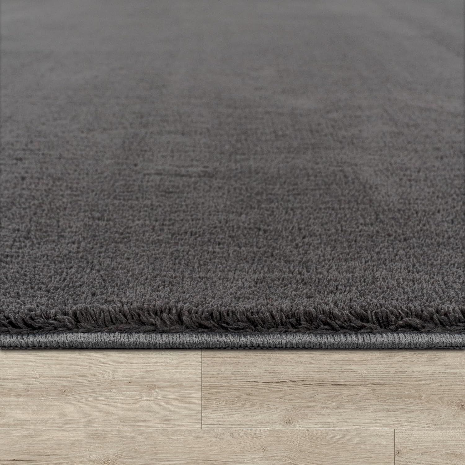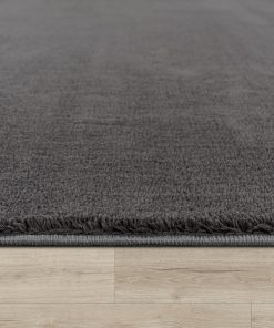 Sehr flauschiger und hochwertig wirkender Kurzflor-Teppich in Anthrazit, der sich angenehm weich anfühlt und dem Wohnzimmer sofort mehr Gemütlichkeit verleiht. Er liegt dank rutschfester Rückseite sicher, lässt sich leicht reinigen und hat nach der Wäsche seine Form behalten. Sehr zufrieden, klare Kaufempfehlung.