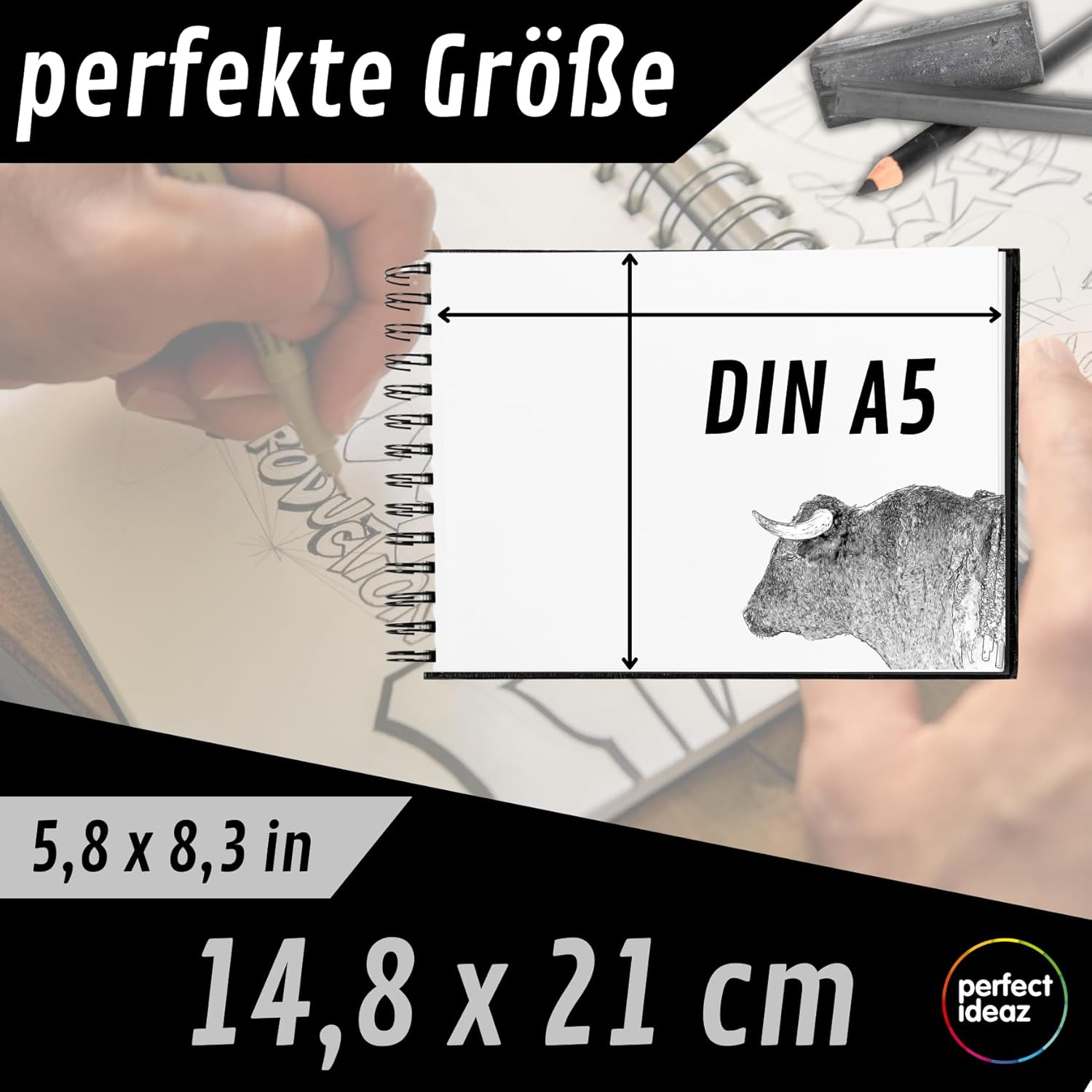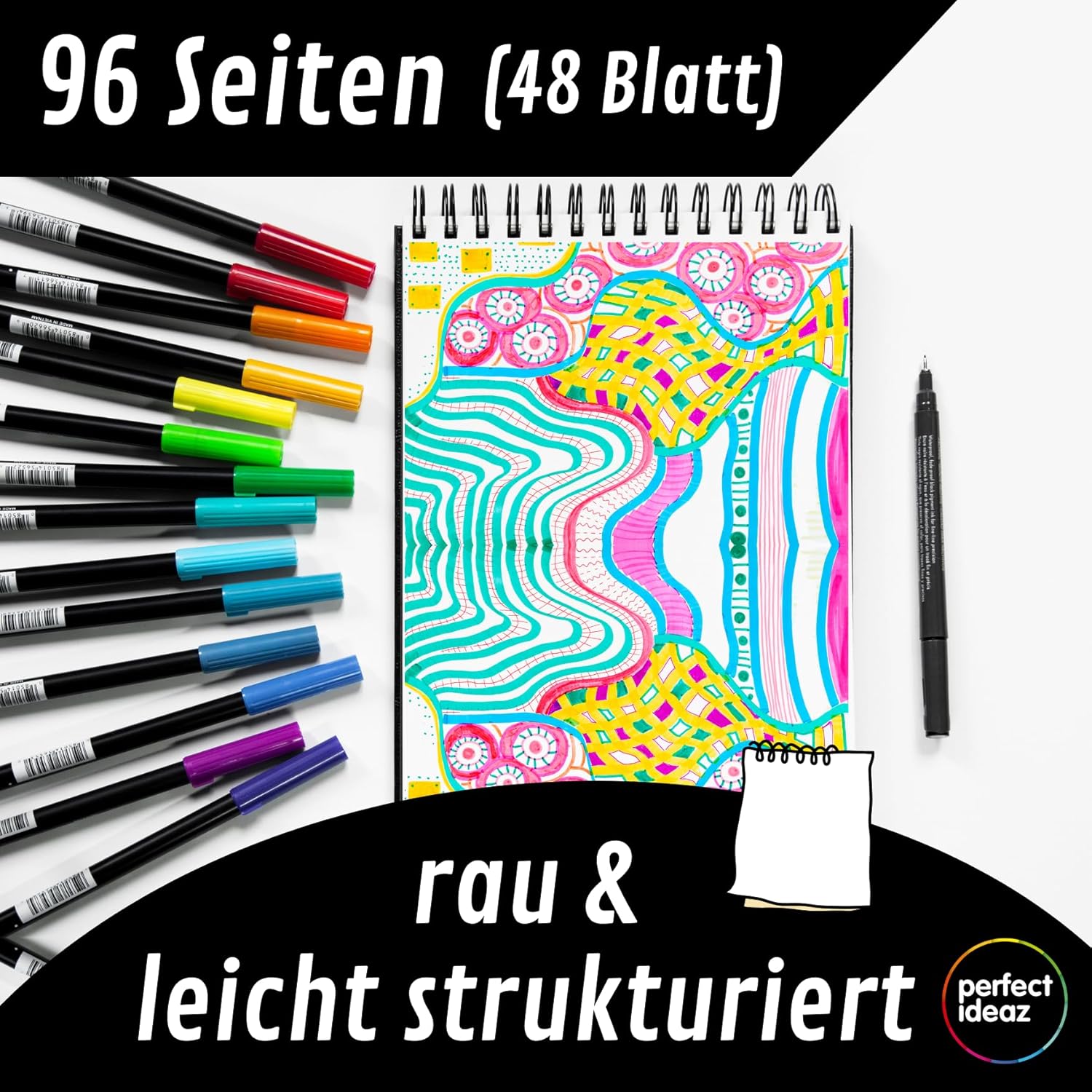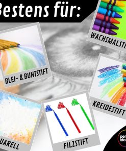 - Vielfätig – professioneller Sketch-Block, geeignet für Trocken-Techniken (Bunt-, Graphit-, Kohle-Stift, etc.), für Blei-Stift-Skizzen, Zeichen-Utensilien, zum Malen, Zeichnen