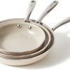 Sehr zufriedener Kauf: Das Set mit 20/24/28 cm deckt alle Bedürfnisse ab, die Antihaft-Keramik funktioniert einwandfrei und es bleibt kaum etwas kleben. Der abnehmbare Griff ist super praktisch zum Verstauen und für Camping, und die Pfannen erhitzen sich gleichmäßig auf Induktion wie auf Gas. Leicht zu reinigen und macht einen robusten Eindruck — klare Kaufempfehlung.