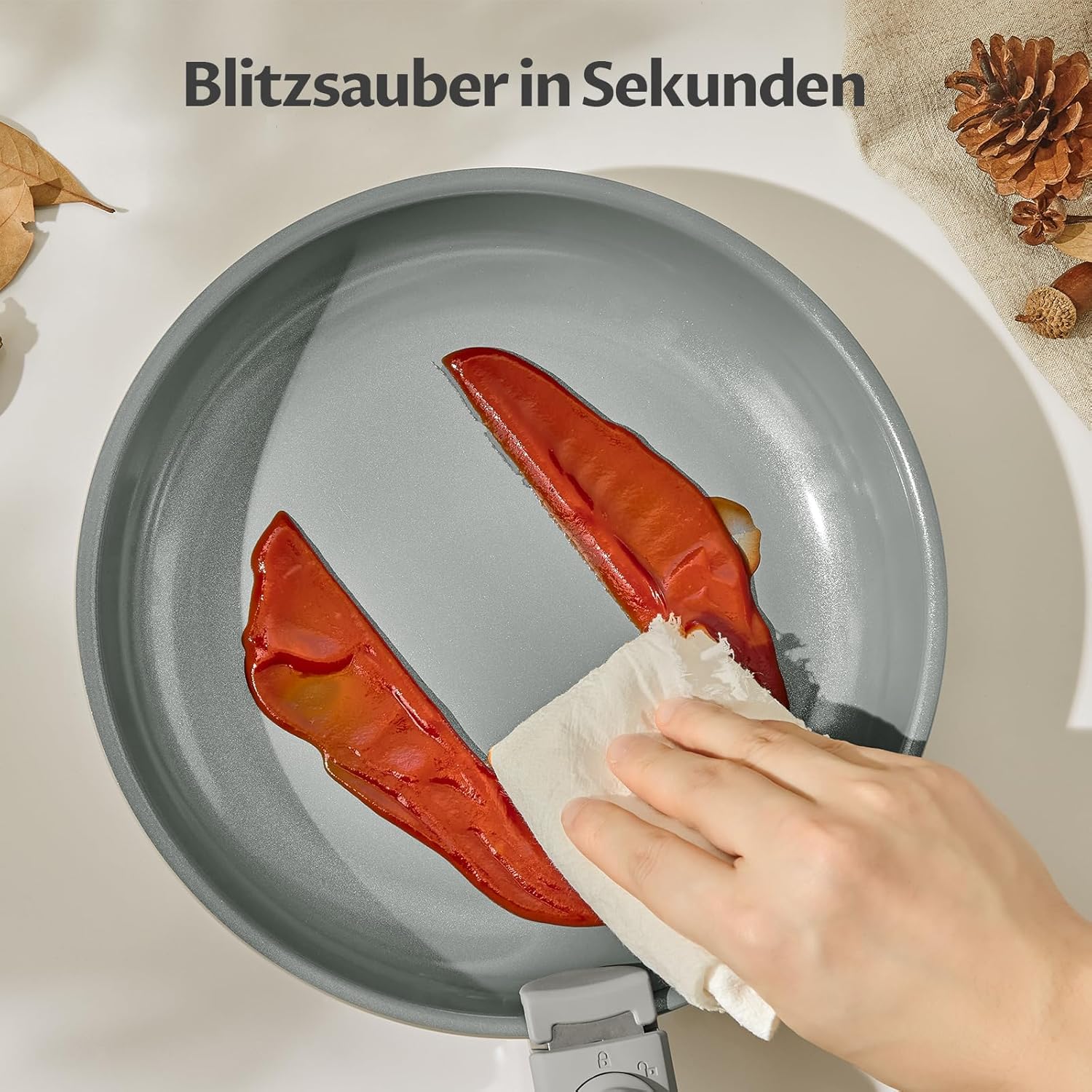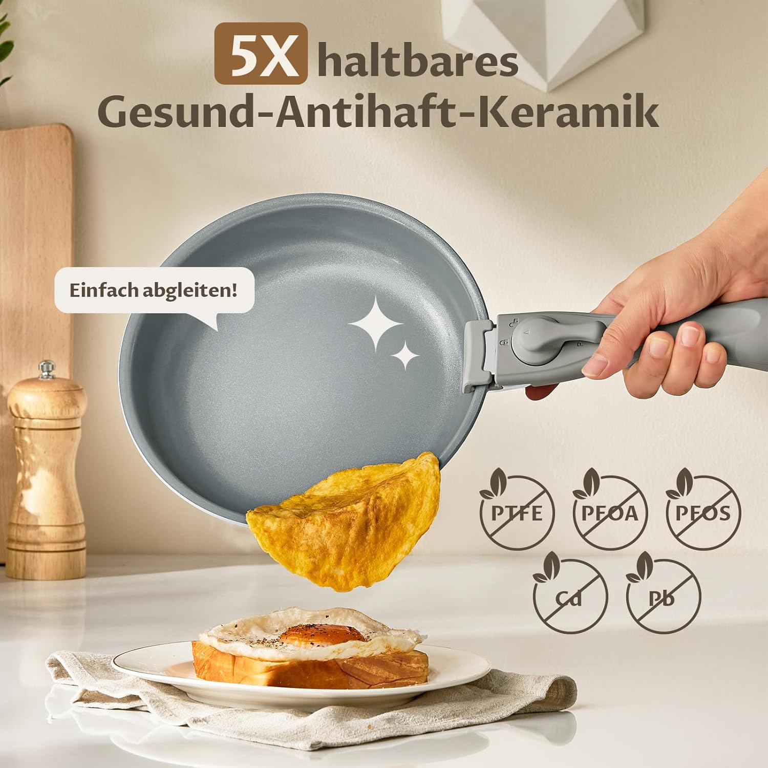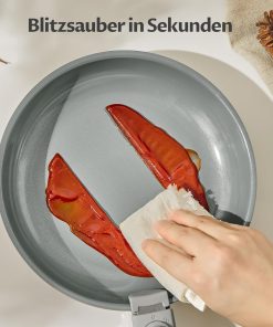 - 𝐃𝐫𝐞𝐢𝐟𝐚𝐜𝐡𝐞 𝐊𝐞𝐫𝐚𝐦𝐢𝐤-𝐀𝐧𝐭𝐢𝐡𝐚𝐟𝐭-𝐁𝐞𝐬𝐜𝐡𝐢𝐜𝐡𝐭𝐮𝐧𝐠: Speise gleitet einfach von der Oberfläche. Das herausragende Antihaftverhalten macht die Reinigung blitzschnell und denkbar einfach. Zudem absolut sorgenfrei – unsere Keramikbeschichtung ist zu 100% frei von PTFE und PFOA