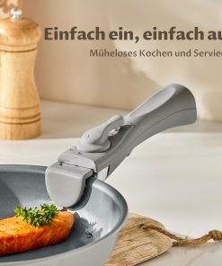 - 𝐒𝐭𝐚𝐛𝐢𝐥𝐞𝐫 𝐚𝐛𝐧𝐞𝐡𝐦𝐛𝐚𝐫𝐞𝐫 𝐆𝐫𝐢𝐟𝐟: Abnehmbarer Griff mit doppeltem Sicherheitsmechanismus, ergonomischem Design und bequemem Griff für sicheres und kühles Kochen