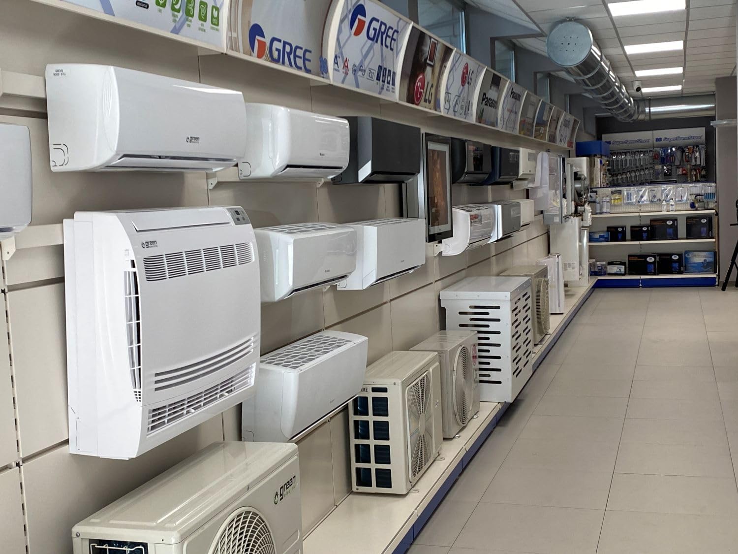 Trial Green Electric Plus WiFi 12+12 Klimagerät mit R32-Kältemittelgas mit sehr hoher Energieleistung und Wärmepumpe, Klasse A++/A+. Hauptmerkmale: Wi-Fi-Steuerung – App für iOS- und Android-Systeme. Abgerundete Linie, hochglänzende Oberfläche, sehr dezentes hintergrundbeleuchtetes Display, kann auf Wunsch deaktiviert werden, um die Nachtruhe nicht zu stören. Das integrierte Wi-Fi ermöglicht die Fernsteuerung über die App auf Ihrem Smartphone. iFeel: Der in der Fernbedienung integrierte Sensor erfasst die Umgebungstemperatur und sendet das Signal an das Innengerät. So kann das Innengerät die Menge und Temperatur des Luftstroms für maximalen Komfort genau an der Stelle anpassen, an der sich die Fernbedienung befindet, und nicht an der Stelle, an der sich das Gerät befindet. Maximaler Komfort: 4 Lüftungsgeschwindigkeiten, 3D-Schwenkung, sehr niedriger Geräuschpegel im Quiet-Modus, automatische Reinigungsfunktion des Verdampfers und Sterilisation bei 55°C, X-Ventilatorfunktion. Modell: Serie Plus / Innengerät Modell 12000 Btu: GPLUS.35S / Außengerät Modell: GPLUS.T71E / Typ: Wärmepumpe / Leistung: 7,1 / 8,6 kW. Energieeffizienz – Saisonaler Wirkungsgrad: SEER / SCOP (durchschnittliches Klima): 6,1 / 4,0 – Energieeffizienzklasse (Kühlen): A++ / Energieeffizienzklasse (Heizen): A+ / Saisonaler Stromverbrauch (kWh/Jahr): 407 / 2189. Leistung – Kühlleistung (kW): 7.10 (2.309,20) / Heizleistung (kW): 8.60 (3.659,20) / Außen-U. Luftstrom (m³/h): 3800 / Außen-U. Schalldruck (dB(A)): 57/58 / Leistungsaufnahme Kühlung (kW): 1.88 (1.102,87) / Leistungsaufnahme Heizung (kW): 2.23 (0.982,87). Elektrische Daten: Stromversorgung (V/Hz): 230/50/1 – Eigenschaften: Kältemittelgas: R32 – 1,7 kg / 1,148 T.CO2 eq. / Flüssigkeits-/Gasleitungsdurchmesser (Zoll): 1/4 – 3/8 / Luftdurchsatz U.I. 12000 (sa.-a.-m.-b.) (m³/h): 590-520-480-280 / Schalldruck U.I. 12000 (dB(A)): max 41 – min 24 / Max.