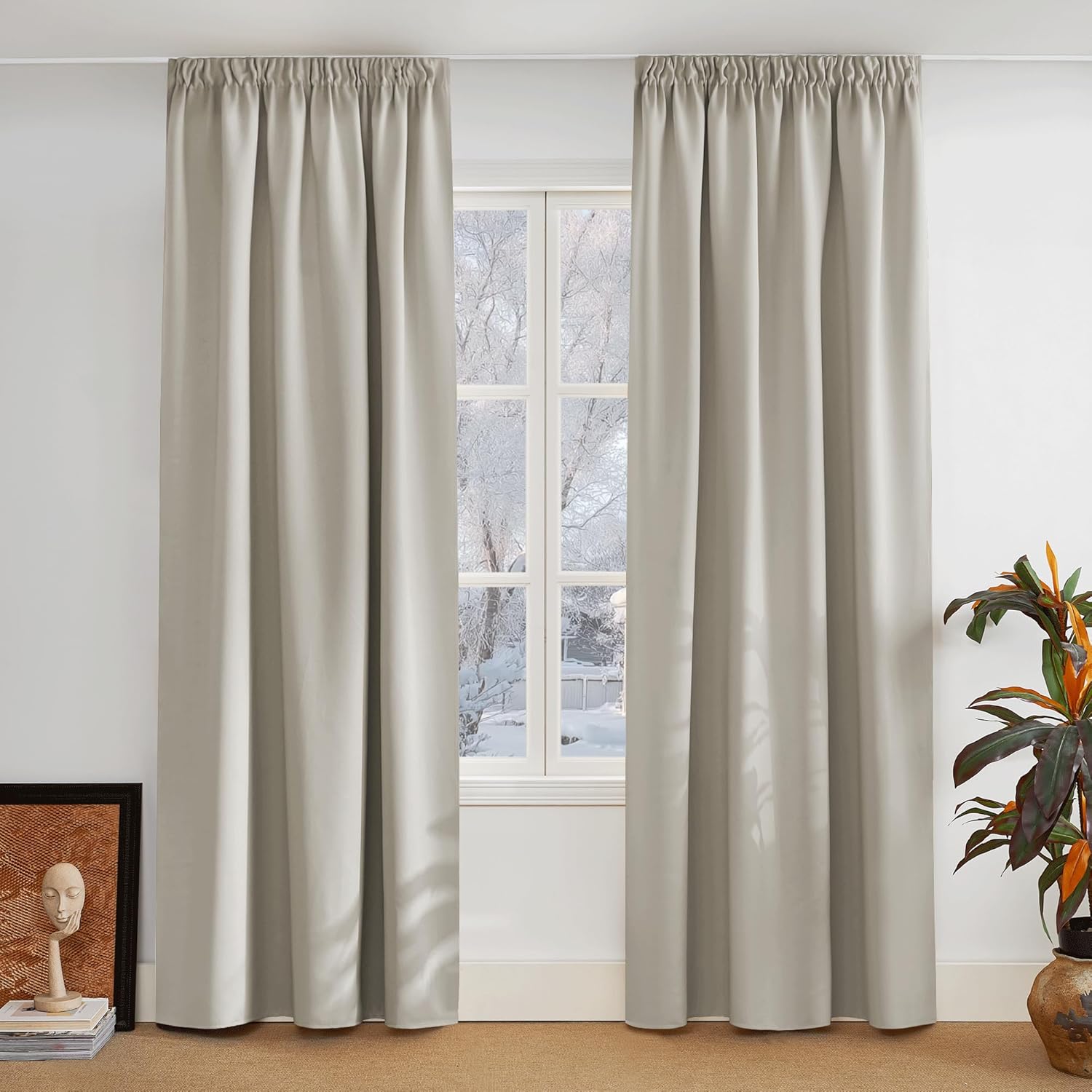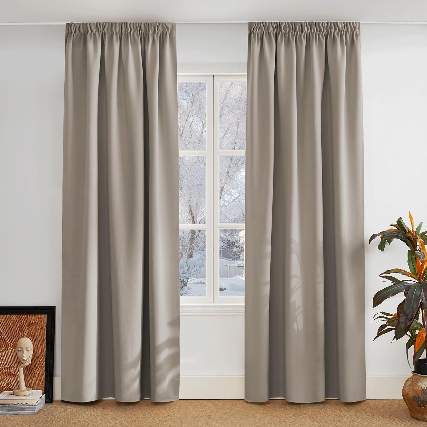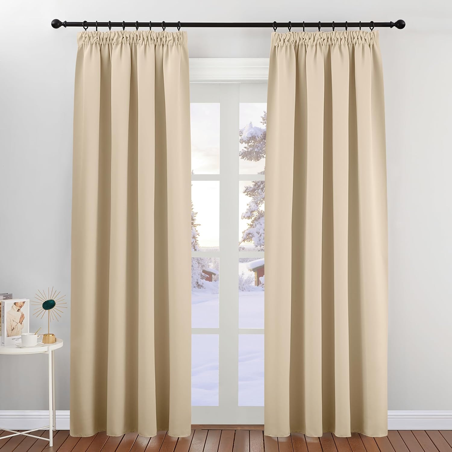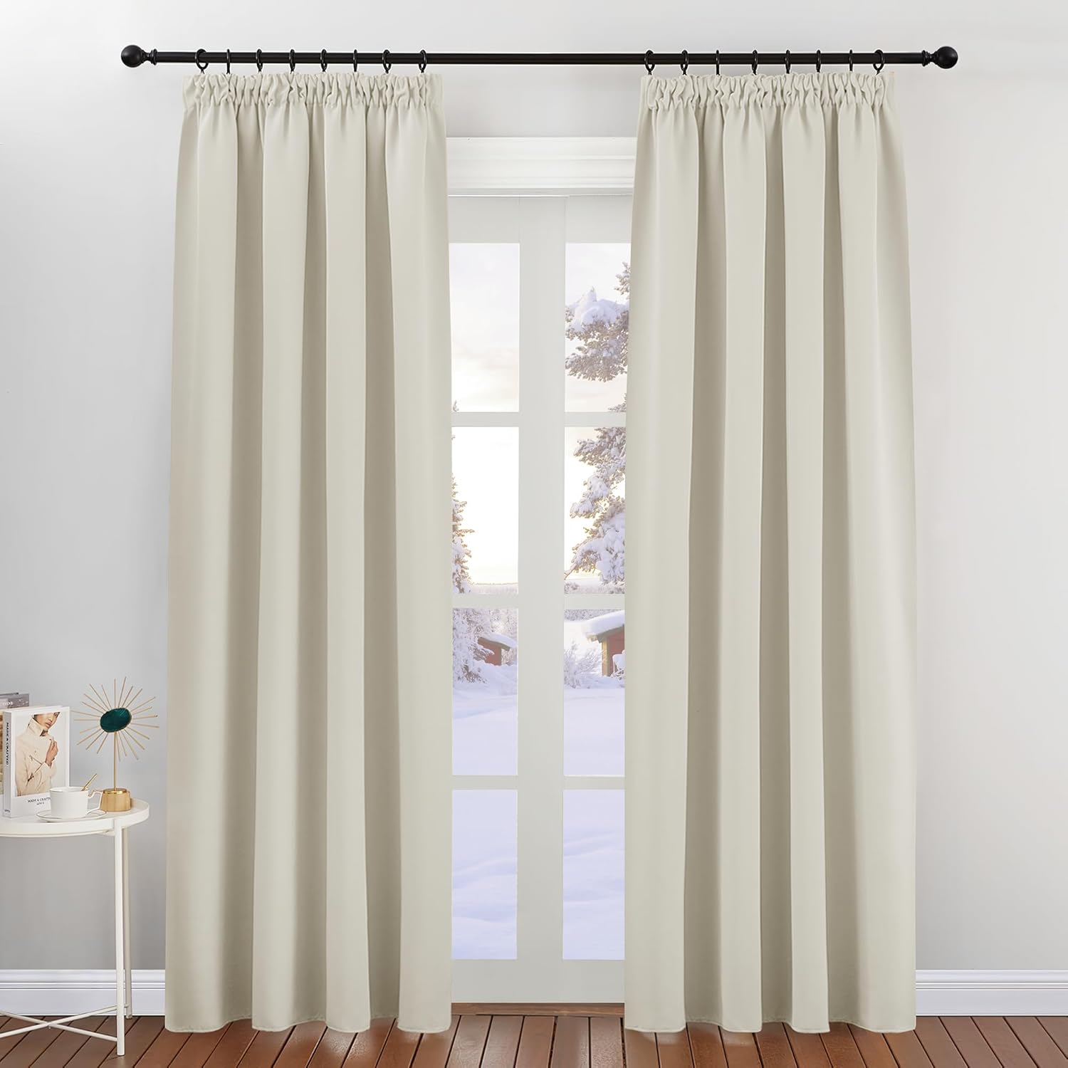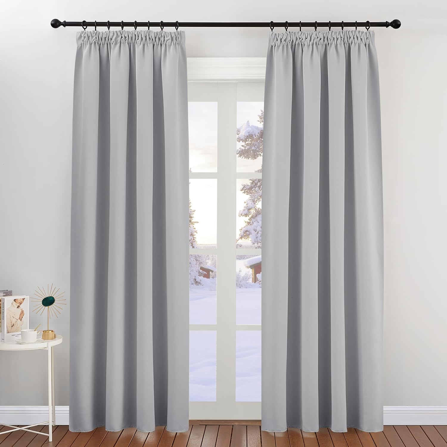 - Fantastic material: A super heavy and soft fabric makes these blackout curtains a high-quality product. (Weight: 230 g/m².) In addition, 85%–95% of light is blocked, and it is heat-insulating, sound-insulating and energy-saving. Both sides are the same colour.