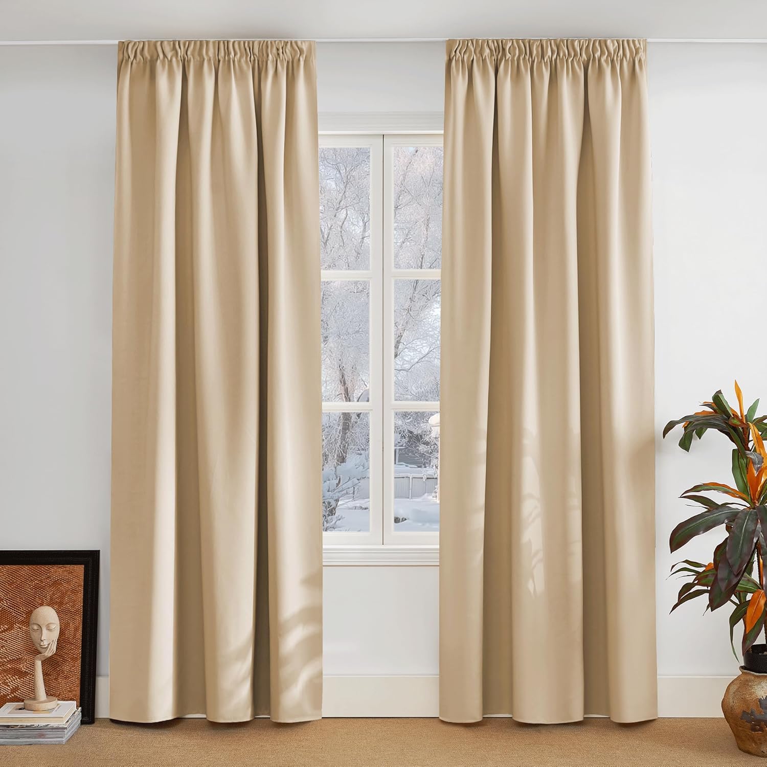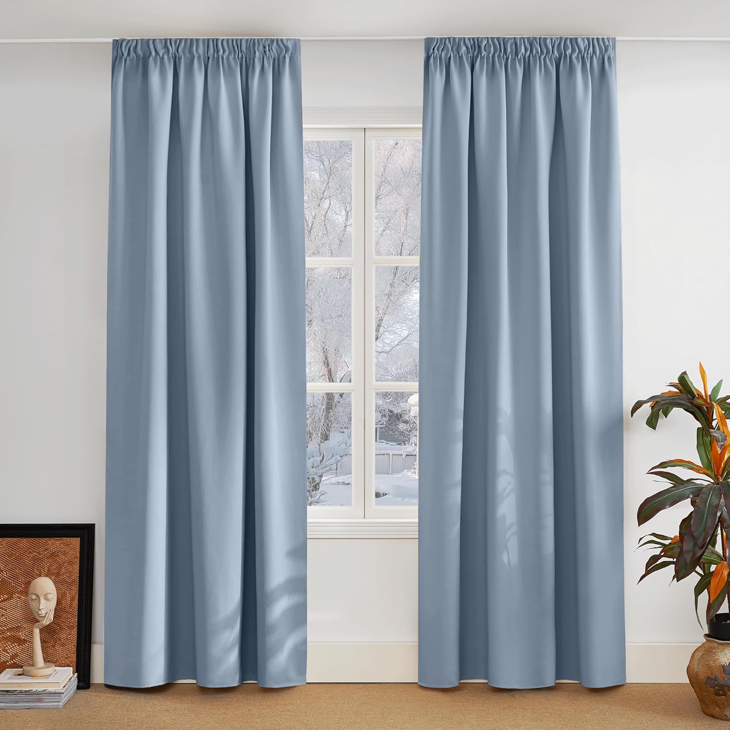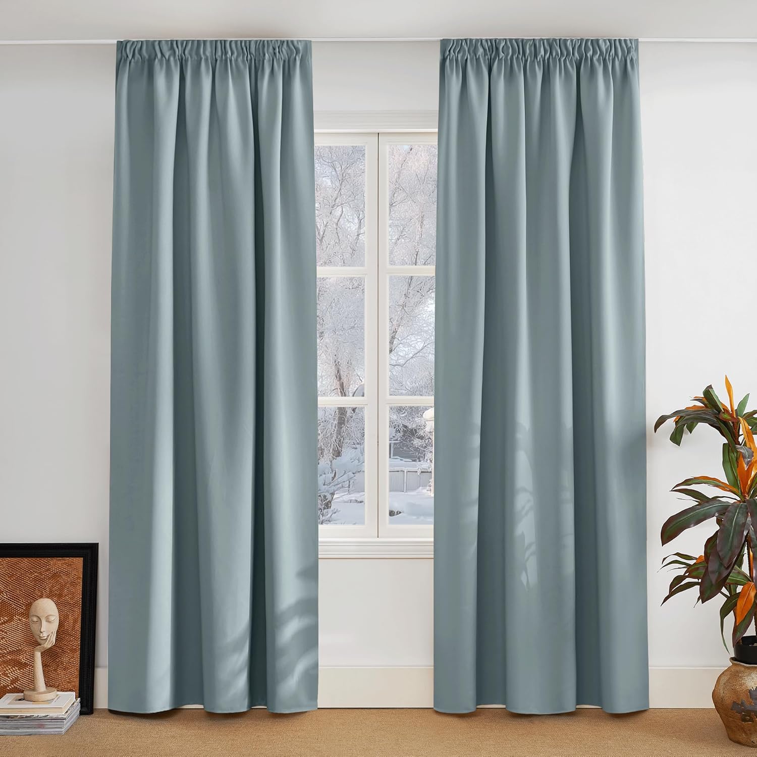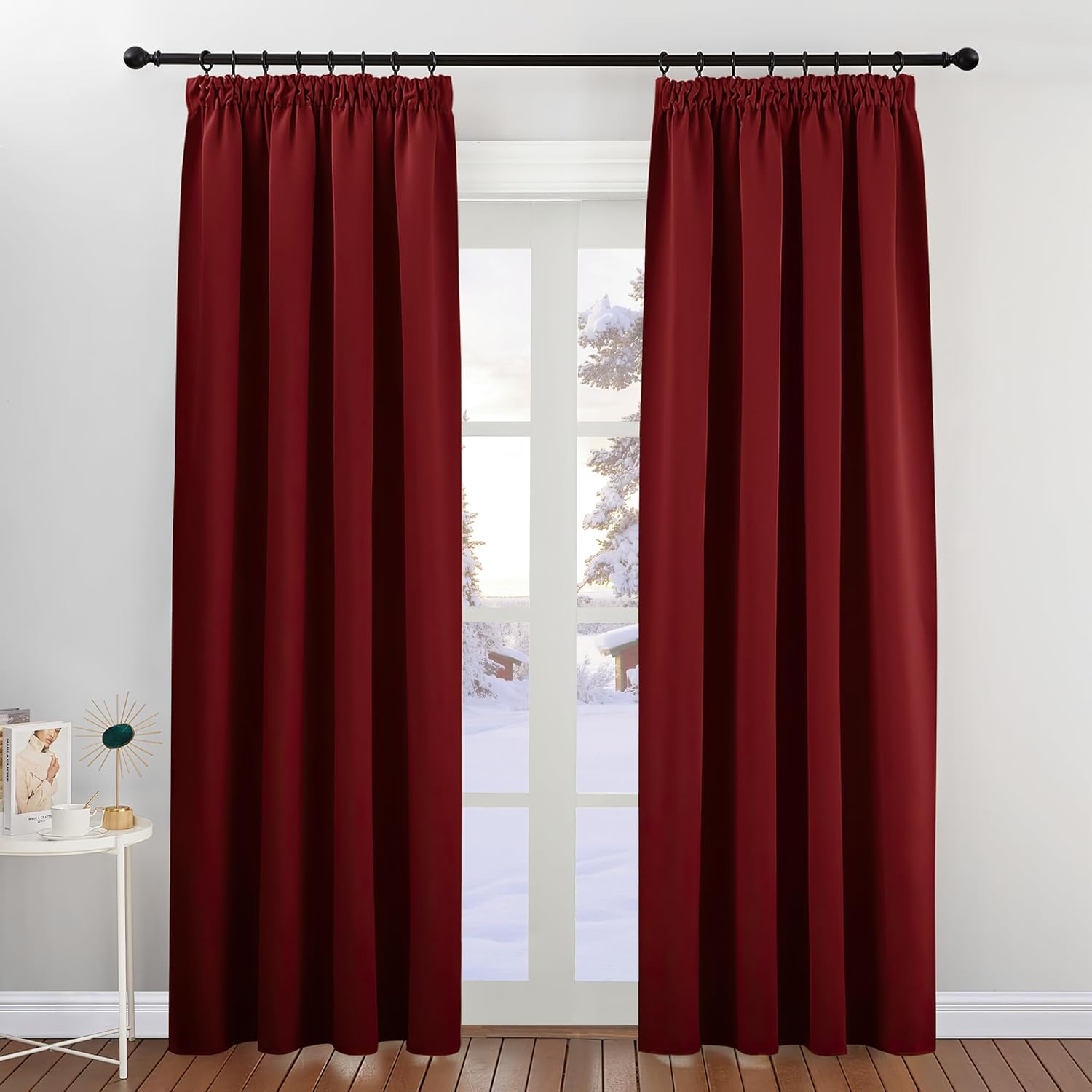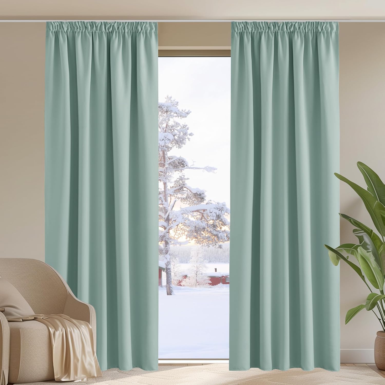 - Fantastic material: A super heavy and soft fabric makes these blackout curtains a high-quality product. (Weight: 230 g/m².) In addition, 85%–95% of light is blocked, and it is heat-insulating, sound-insulating and energy-saving. Both sides are the same colour.