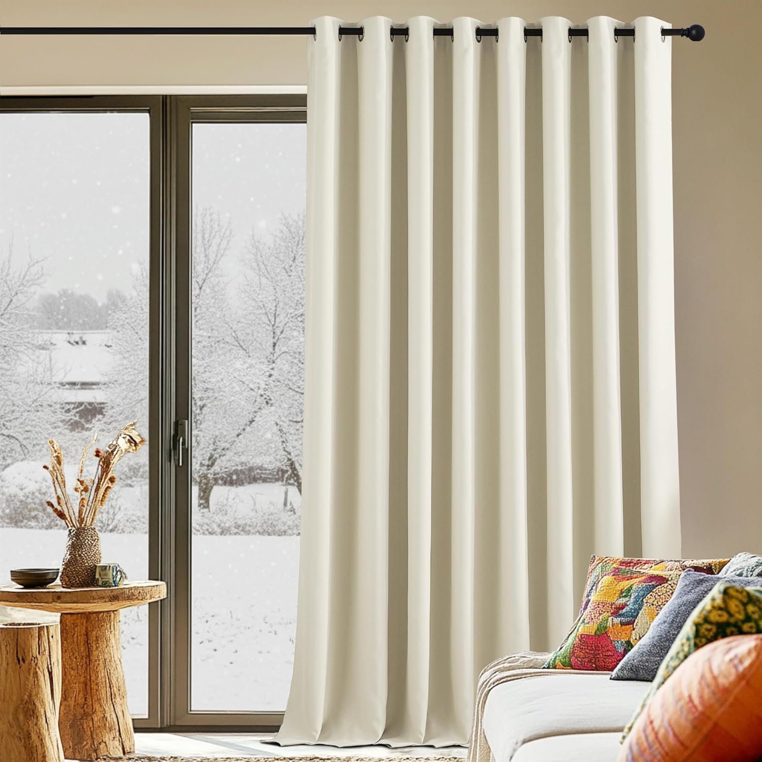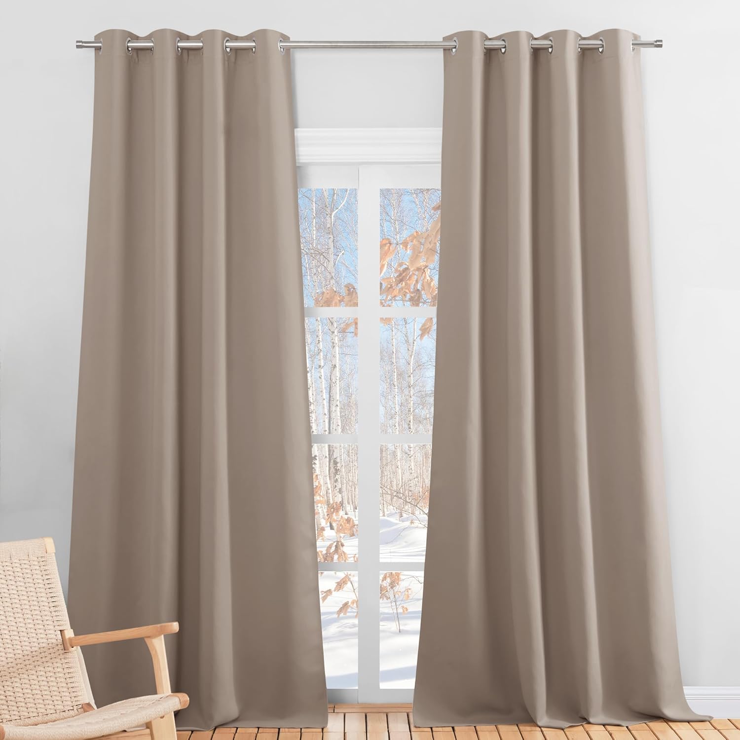 - Kälte- und Hitzeschutz – jährlicher Komfort: Aus einem dicken, dichten Isolationsstoff gefertigt, bieten unsere Vorhänge gute Kälte- und Hitzeschutz. Im Winter minimieren sie effektiv Wärmeverlust durchs Fenster und halten kalte Zugluft draußen – Ihr Zuhause bleibt gemütlich warm. Im Sommer halten sie Hitze und UV-Strahlen zuverlässig ab – Ihr Raum bleibt angenehm kühl, ohne zuviel Klimaanlagen. Dadurch genießen Sie jährlichen Komfort und sparen Energie, unabhängig von Jahreszeiten.