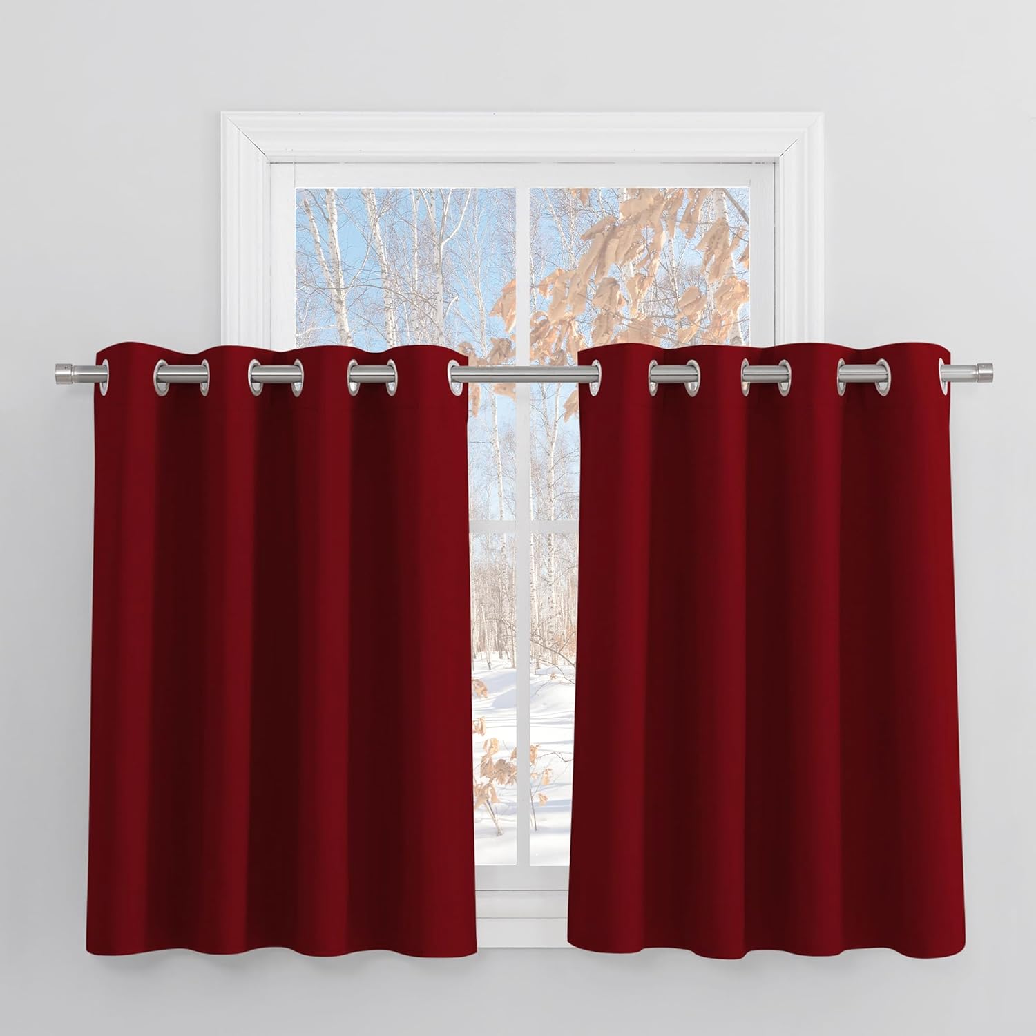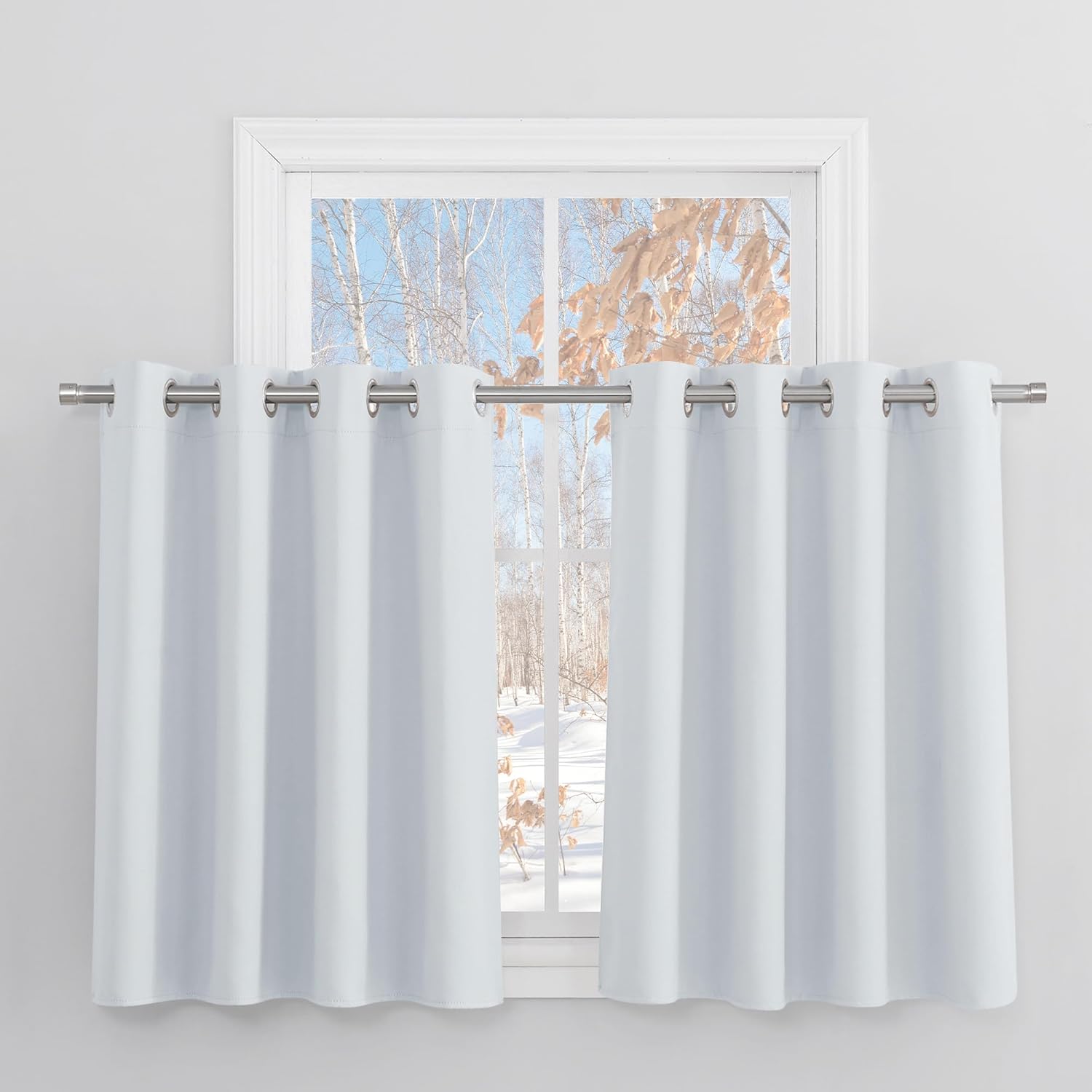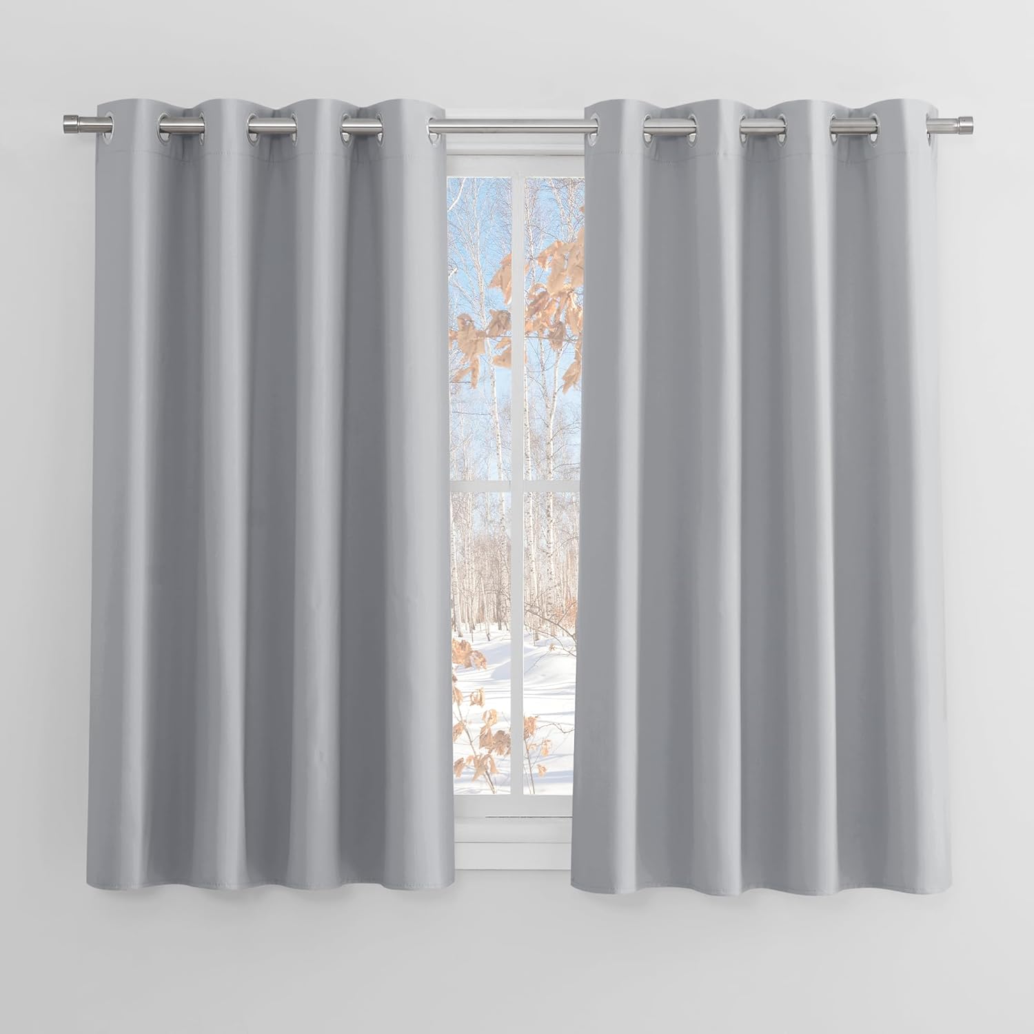 Gutes 2er-Set in schönem Grau: die Ösen erleichtern das Aufhängen, die Maße sind ideal für kleinere Fenster und der Vorhang verdunkelt zuverlässig ohne zu schwer zu wirken. Der Stoff wirkt robust und blickdicht, die Optik ist schlicht und passt in Wohnzimmer oder Küche — sehr gutes Preis-Leistungs-Verhältnis.