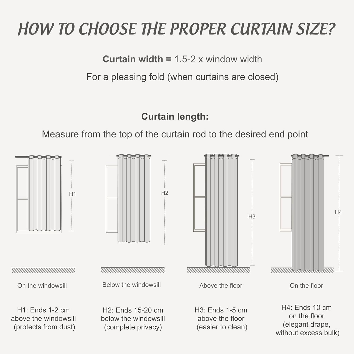 - Tipps: Sie erhalten zwei blickdichte Vorhänge mit einer Höhe von 150 cm und einer Breite von 90 cm. (Die Höhe wird von dem Oberteil der Ösen gemessen.) | Mit 6 Metallösen erleichtert sich sowohl Montage als auch Demontage des Vorhangs. | Falls Sie Fragen zum Produkt haben oder Unzufriedenheit äußern möchten, stehen wir Ihnen jederzeit gerne zur Verfügung – kontaktieren Sie uns einfach!