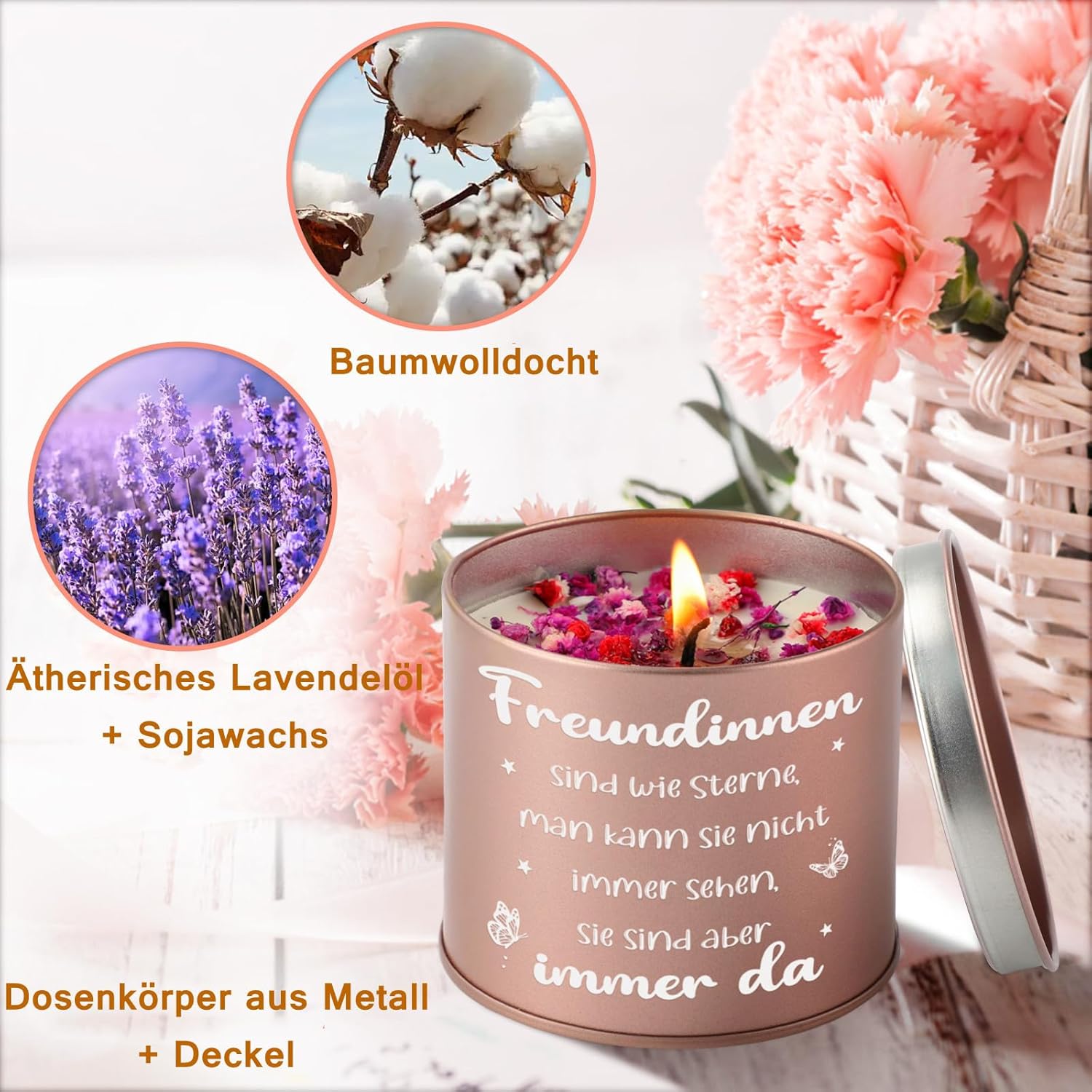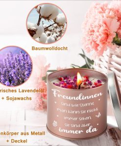- 🎁Freundin Duftkerze Geschenke: Entdecken Sie unser Angebot an Duftkerzen, die speziell für Freunde entwickelt wurden. Der beruhigende und entspannende Duft von Lavendel ist eine duftende Erinnerung an Ihre Beziehung. Unsere Duftkerzen verwandeln das Zuhause Ihrer Freundin in eine gemütliche Oase und erhellen ihre Sinne mit Duftkerzen. Duftkerzen werden häufig zur Entspannung und für Selbstpflegerituale verwendet.