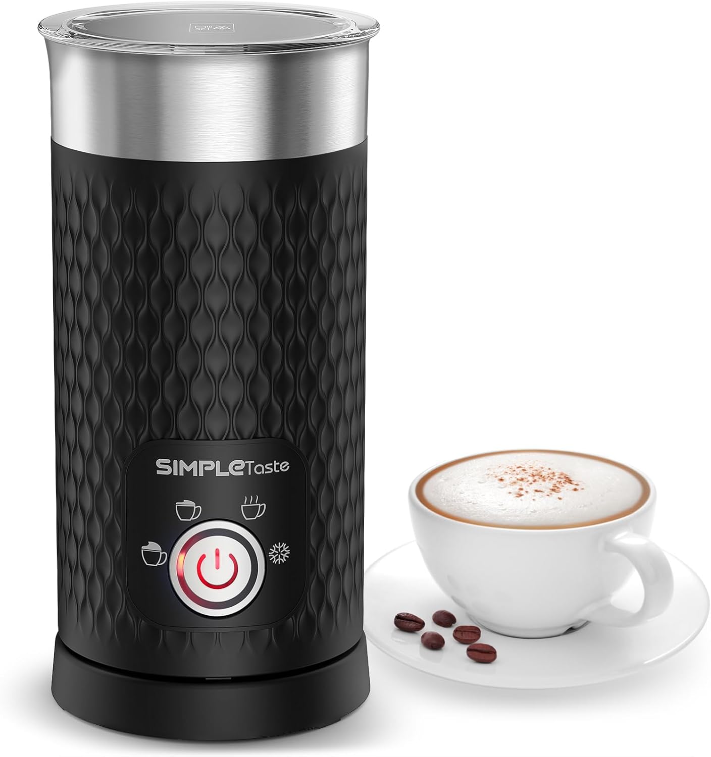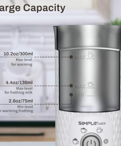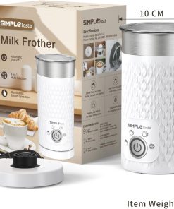 SIMPLETASTE Milchaufschäumer, 4 in 1 Elektrischer Automatischer Milchschäumer für Heißen und Kalten Milchschaum Milch Erwärmen Automatische Abschaltung