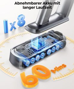 - 🔋Lange Laufzeit – Sauber machen ohne Pause!:VAC03 Akku Staubsauger bietet eine Laufzeit von bis zu 60 Minuten, sodass Sie bequem Ihre gesamte Wohnung oder Ihr Haus reinigen können – ganz ohne Ladepause. Für besonders große Flächen oder intensive Reinigungen lässt sich optional ein Ersatzakku dazukaufen, der die Laufzeit auf bis zu 120 Minuten verlängert. So bleiben Sie flexibel und müssen Ihre Reinigung nie unterbrechen.