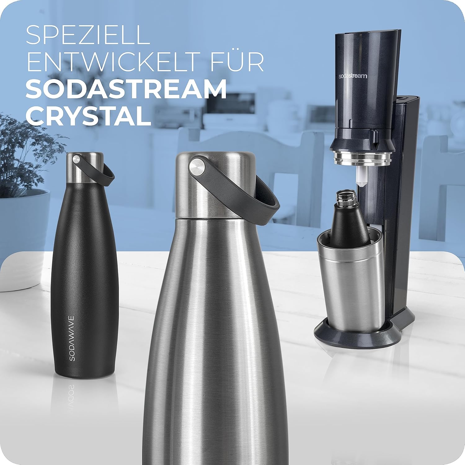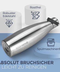 - ✔ SODAWAVE VERSPRECHEN – Mit unserer nachhaltigen Edelstahl Trinkflasche für den Sodastream Crystal jederzeit & überall perfekt gekühltes Sprudelwasser genießen – 100% Zufrieden oder Geld zurück!