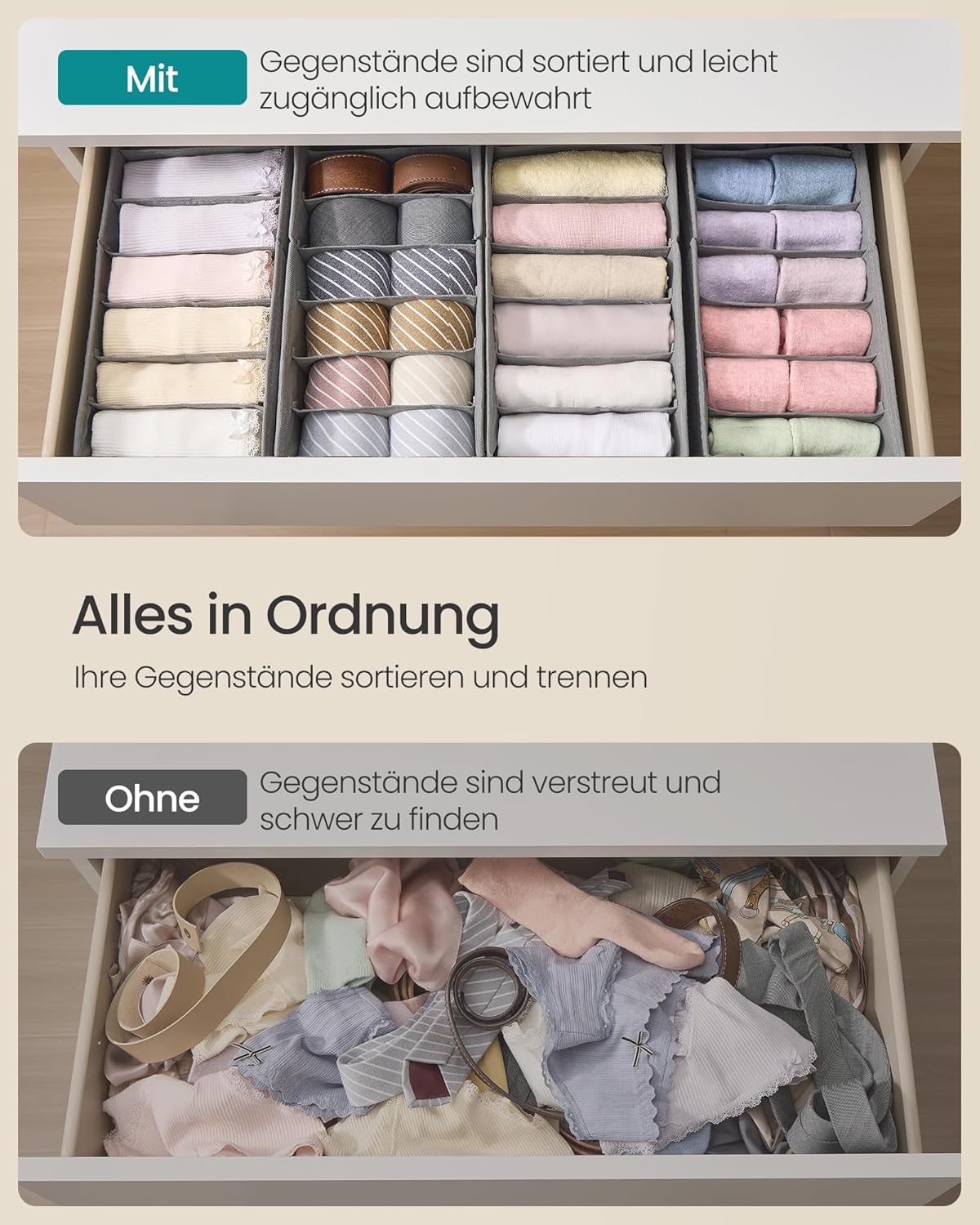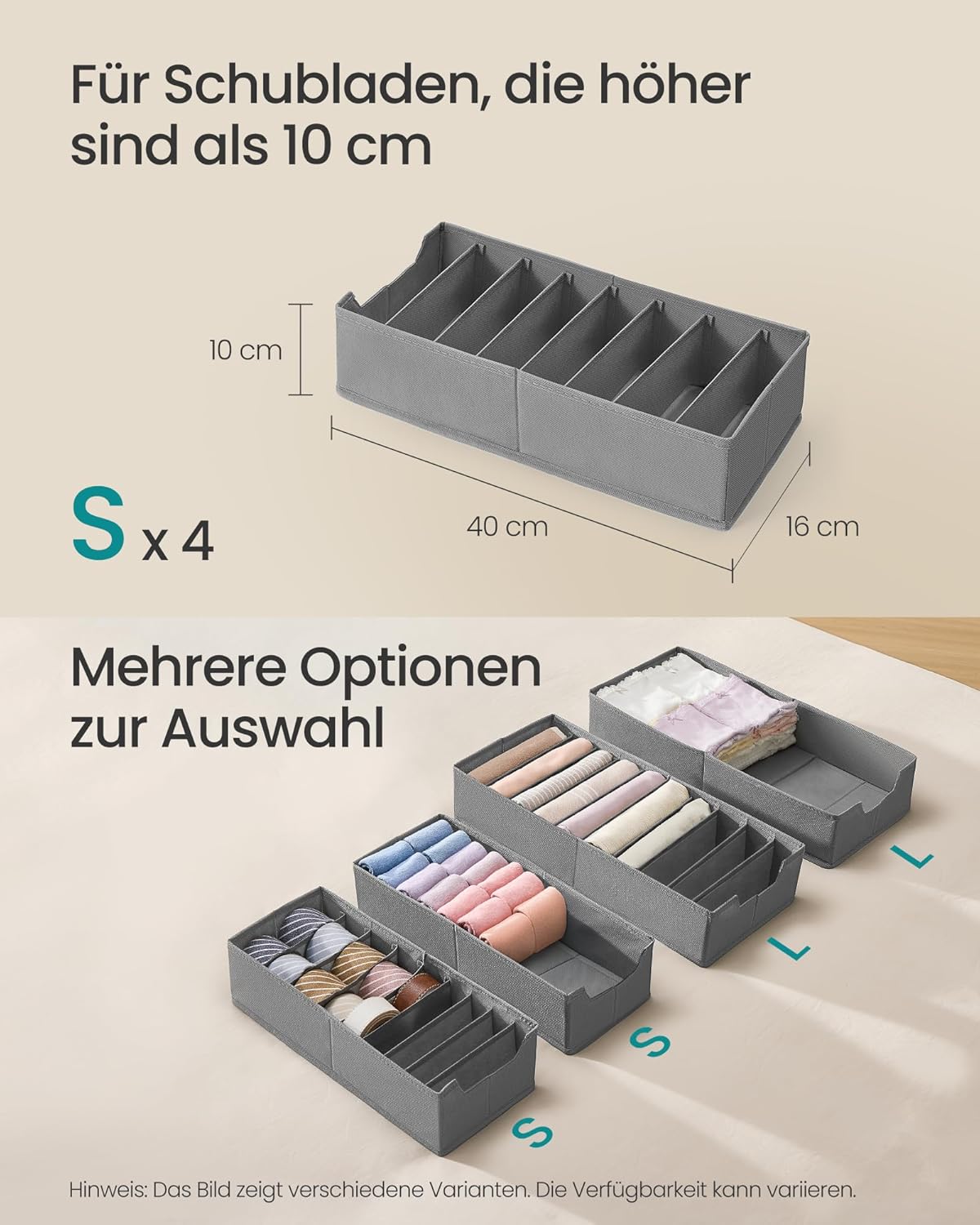 - Vielseitig: Nutzen Sie sie als Schrank-Organizer für Kleidung, BHs, Socken, Krawatten oder sogar Kosmetik, Hautpflegeprodukte und Werkzeuge. Diese Ordnungsboxen halten jede Schublade ordentlich und machen die Suche einfach