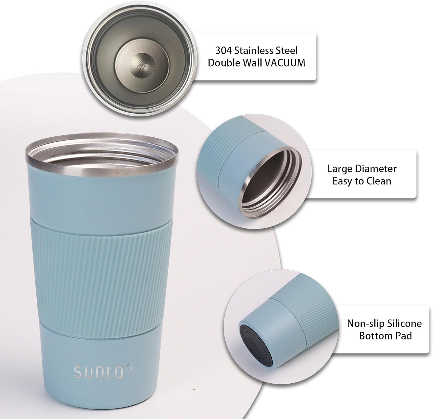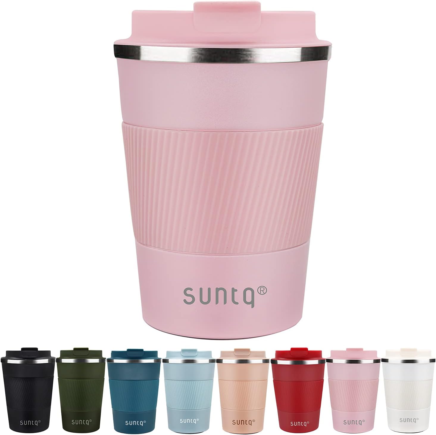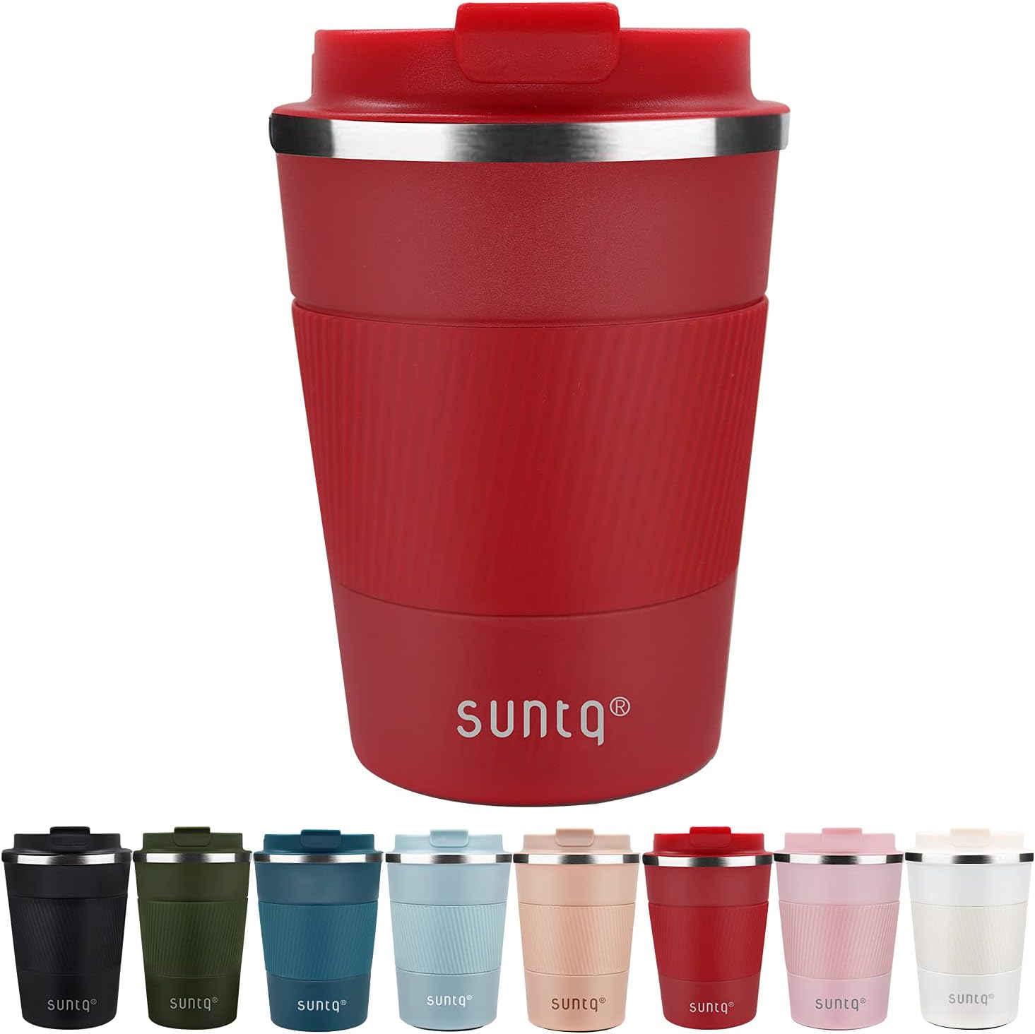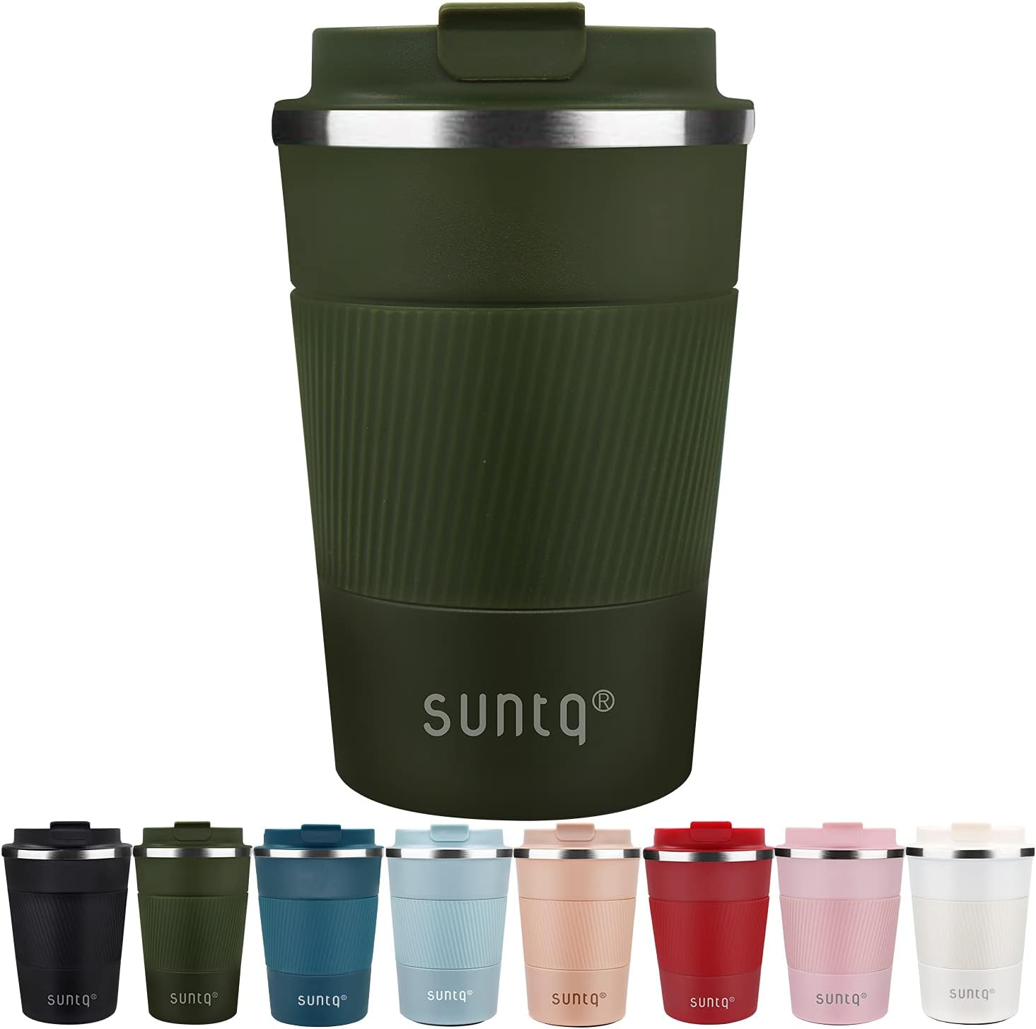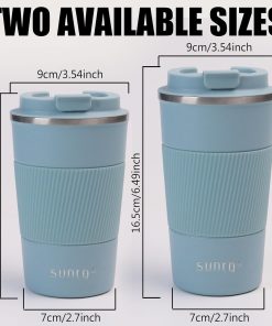 - Funktioneller Stil, Perfekte Kapazität – SUNTQ Kaffeebecher sind sorgfätig pulverbeschichtet. Matte Oberfläche und Einhandbedienung Design mit auslaufsicherem Deckel eignet sich portabel und hervorragend für eine bequeme Reise. Nehmen Sie unsere kleine Kaffeebecher bequem in der Hand oder stecken Sie ihn einfach in Becherhalter.