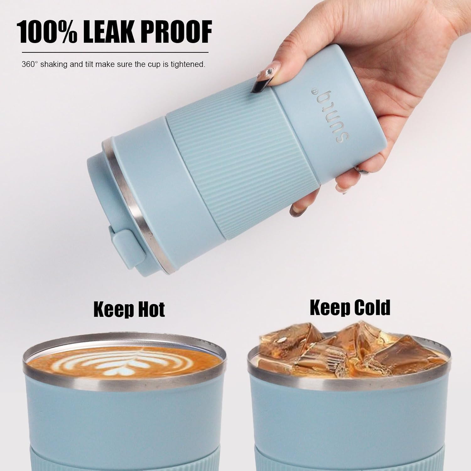 - Hält sich Stundenlang Warm oder Kalt – Doppelwand Isolierung hält Ihre Getränke bei perfekter Temperatur, damit Sie jeden Schluck genießen können! 6 Stunden heiß, 10 Stunden kalt – SUNTQ Thermobecher ist der perfekte Reisebegleiter für unterwegs.