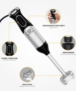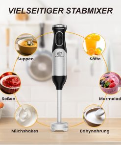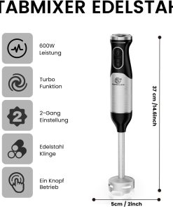 - Vielseitig Einsetzbar – Mit dem Stabmixer Edelstahl bereiten Sie Suppen, Saucen, Shakes und mehr schnell zu. Der Blender Mixer spart Platz und Zeit, während der kompakte Stabmixer jede Zutat zuverlässig auf die gewünschte Konsistenz bringt.