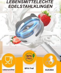 - Hochwertige Edelstahlklingen – Der robuste Pürierstab Edelstahl verfügt über scharfe SUS301 Klingen, die Lebensmittel gleichmäßig pürieren und zerkleinern. Der abnehmbare Mixkopf lässt sich schnell reinigen und sorgt für hygienisches Arbeiten in der Küche.