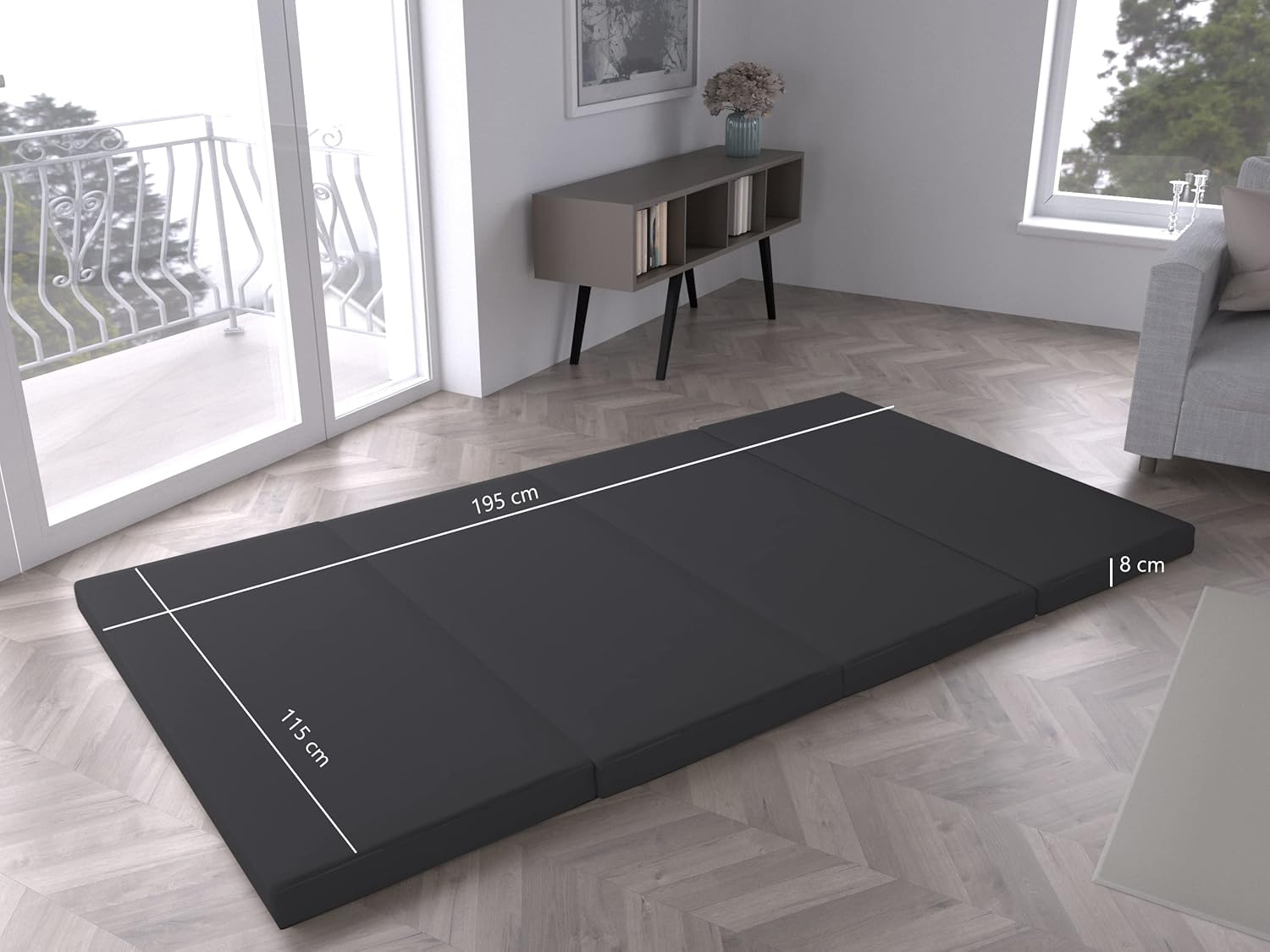 - 😊 Die Länge von 195 cm und die Breite von 115 cm geben Liegekomfort und freie Bewegungsmöglichkeit auch für große Personen. Die Matratze kann perfekt als Zwei-Personen-Matratze oder eine große Einzelmatratze dienen. Zusammengeklappt nimmt die Matratze nur wenig Platz ein und bringt somit keine Probleme mit Aufbewahrung.