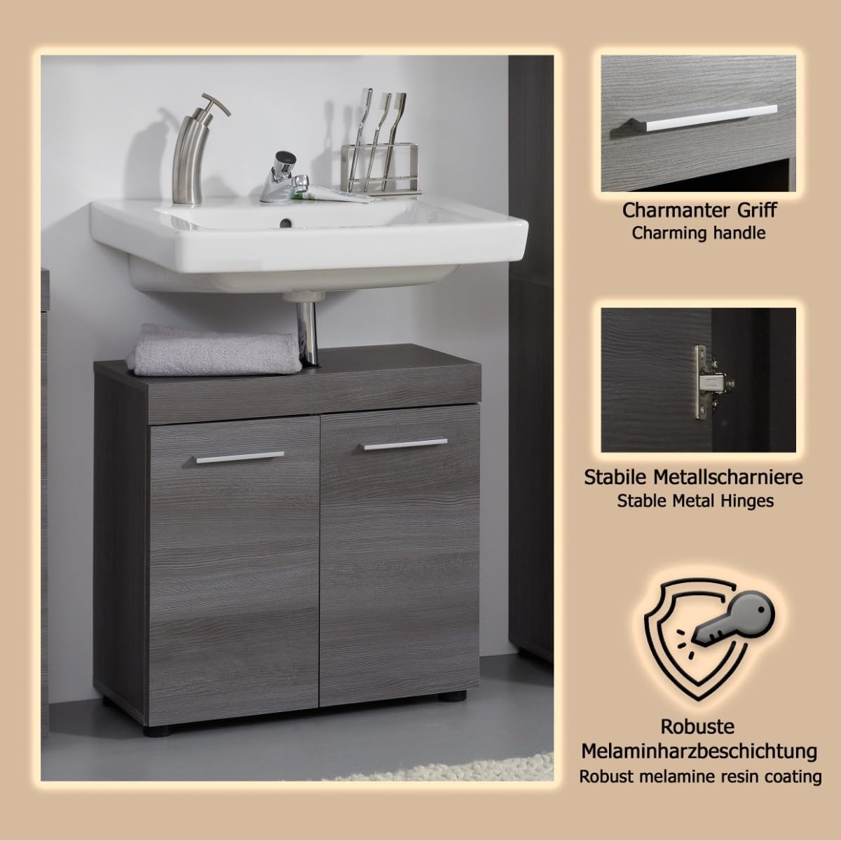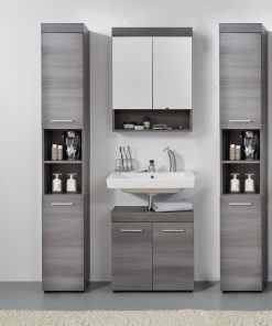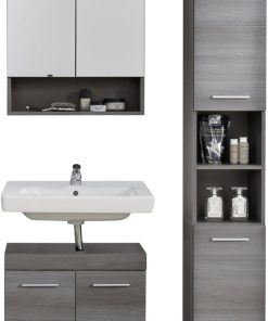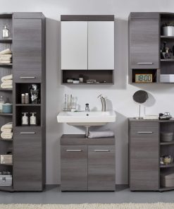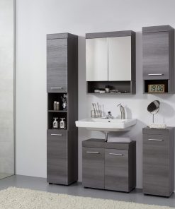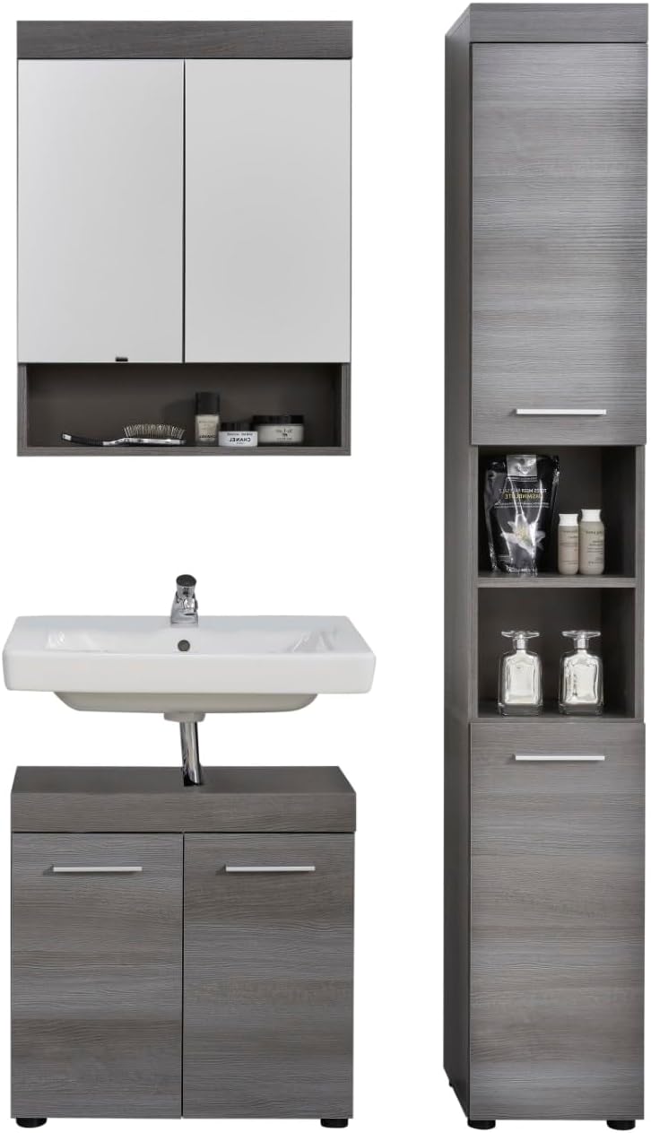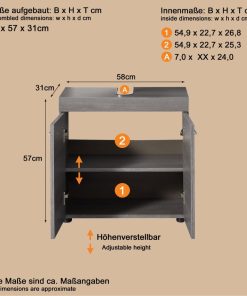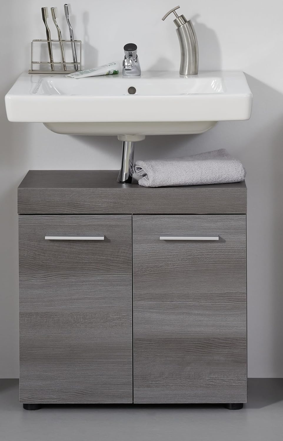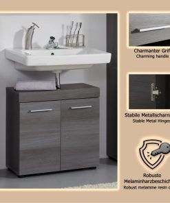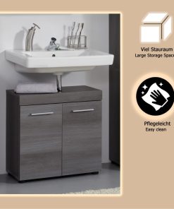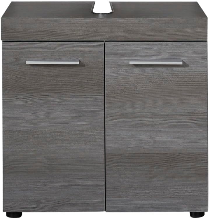 trendteam smart living – Runner – Badschrank – Grau – Waschbeckenunterschrank mit 2 Türen, 1 Einlegeboden – (BxHxT) 58 x 57 x 31 cm – silberfarbener Griff