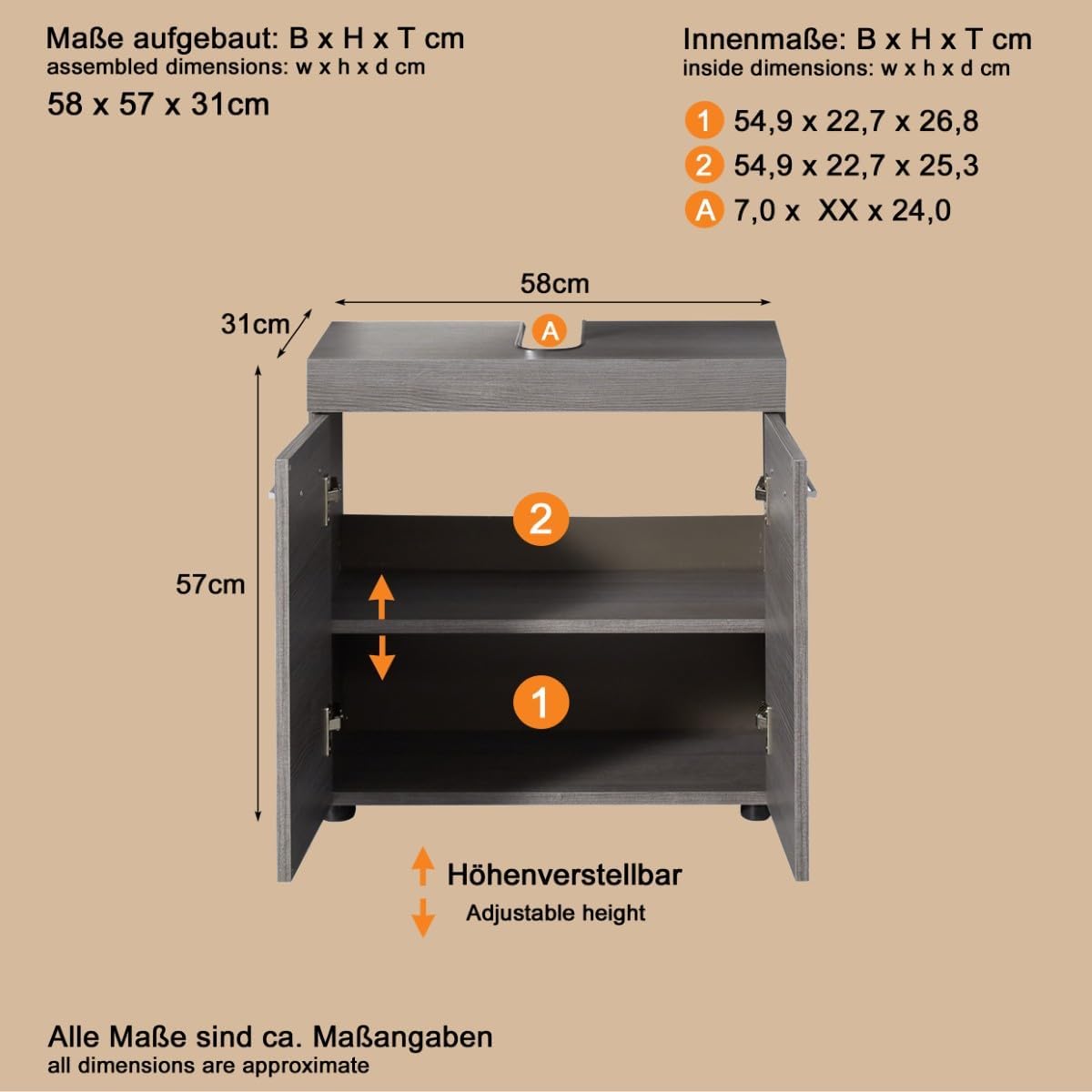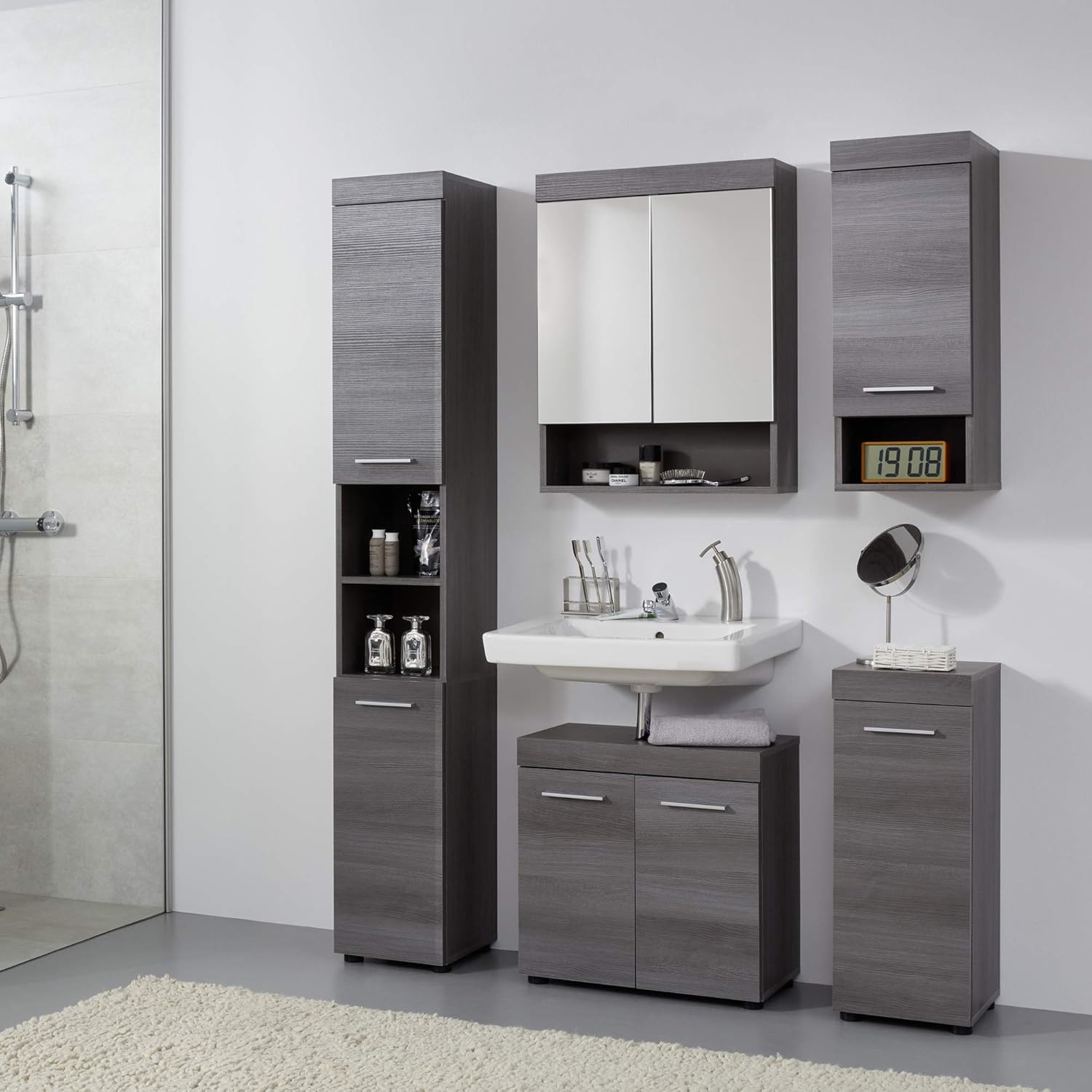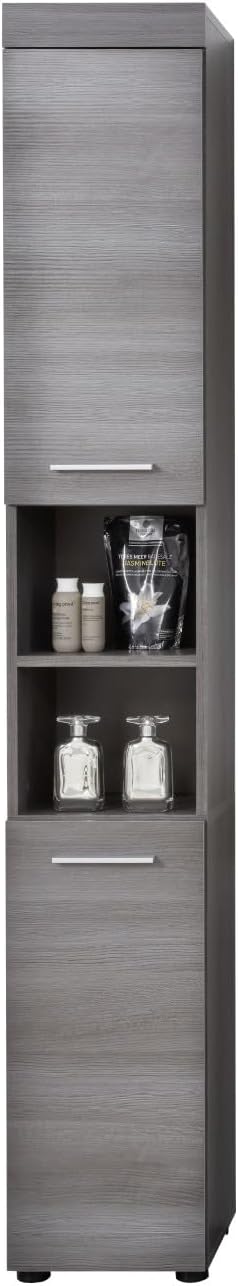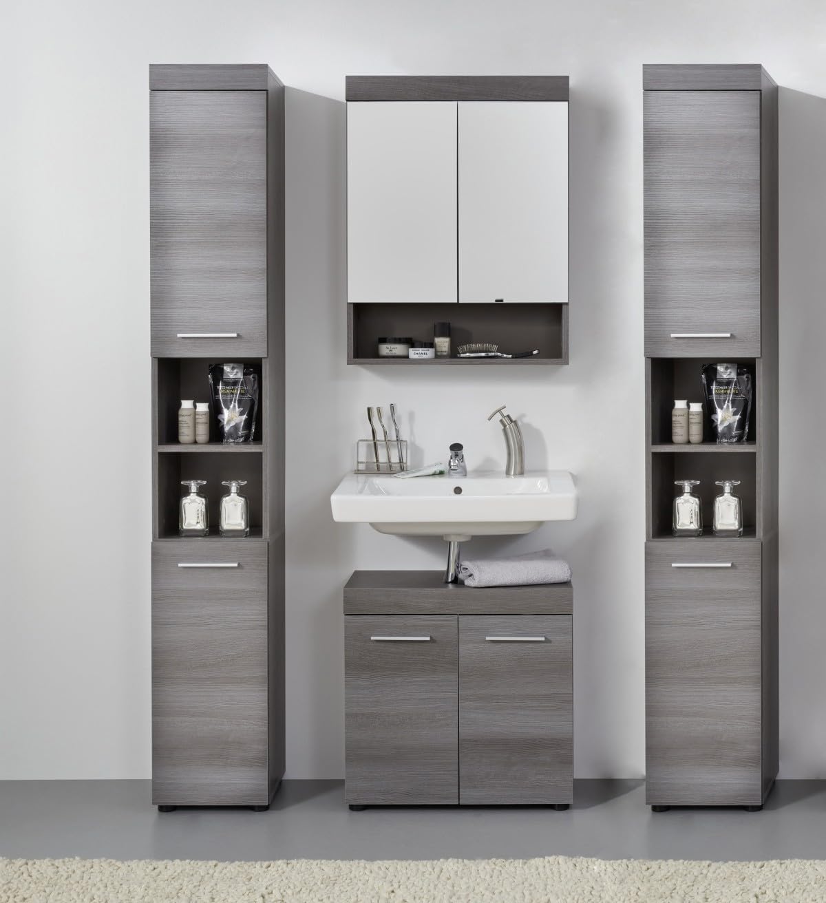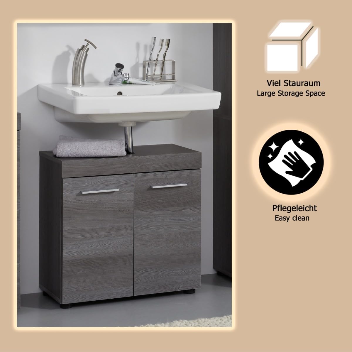 trendteam smart living – Runner – Badschrank – Grau – Waschbeckenunterschrank mit 2 Türen, 1 Einlegeboden – (BxHxT) 58 x 57 x 31 cm – silberfarbener Griff