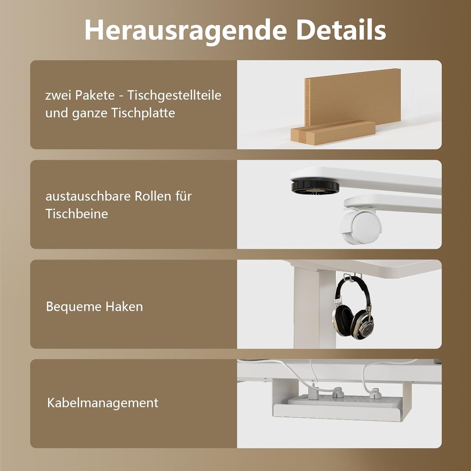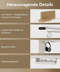 - 【Umfassender Support & Zubehör】Als Computertisch mit Kabelmanagement und Rollen dient er als vollwertiger Arbeitsplatz. Wir bieten eine 5-Jahres-Garantie auf den Rahmen und den Motor und bieten lebenslangen technischen Support. Dank mobiler Rollen platzieren Sie den Tisch flexibel in jedem Raum. NB: Sie erhalten 2 Pakete nach Ihrer Bestellung.