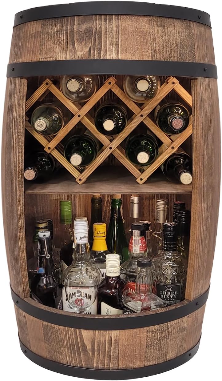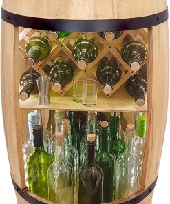 - Große Kapazität – Der Schrank viel Platz für Wein, Whisky, Bier, Alkohol, Gläser, Küchenutensilien und andere nützliche Dinge. In Holzfass passen ca. 30-40 Flaschen. Perfektes Geschenk Für Weinliebhaber