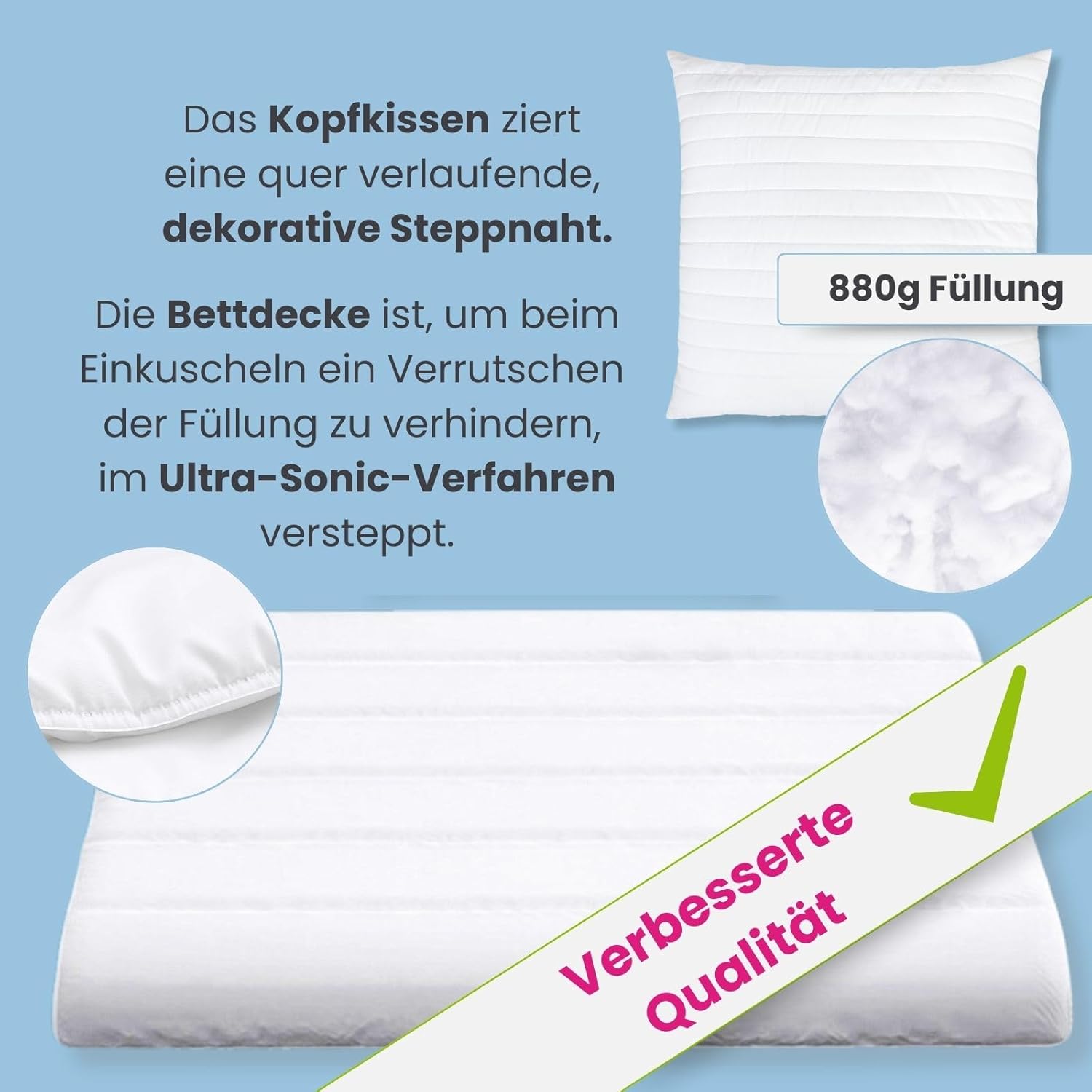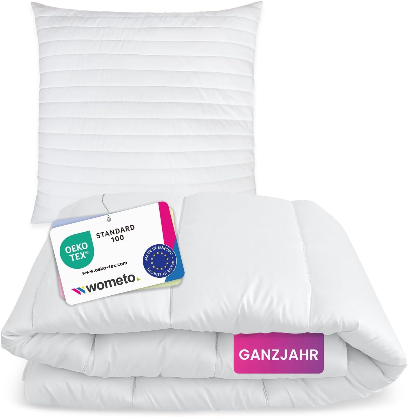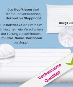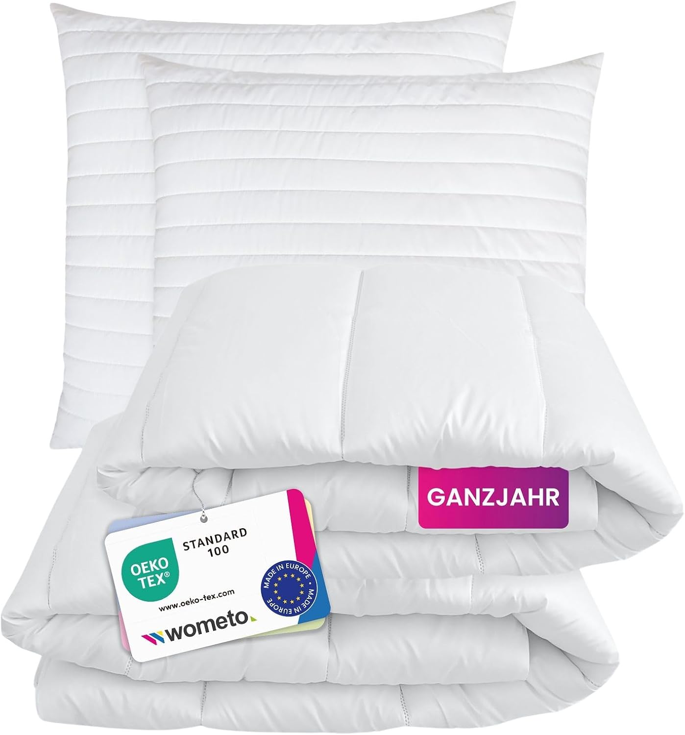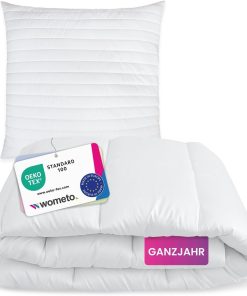 wometo Bettenset 135×200 4 teilig oekoTex – 2X Bettdecke 135×200 Set mit 2X Kissen 80×80 (Kopfkissen) – Ganzjahres Bettdecken/Steppdecken