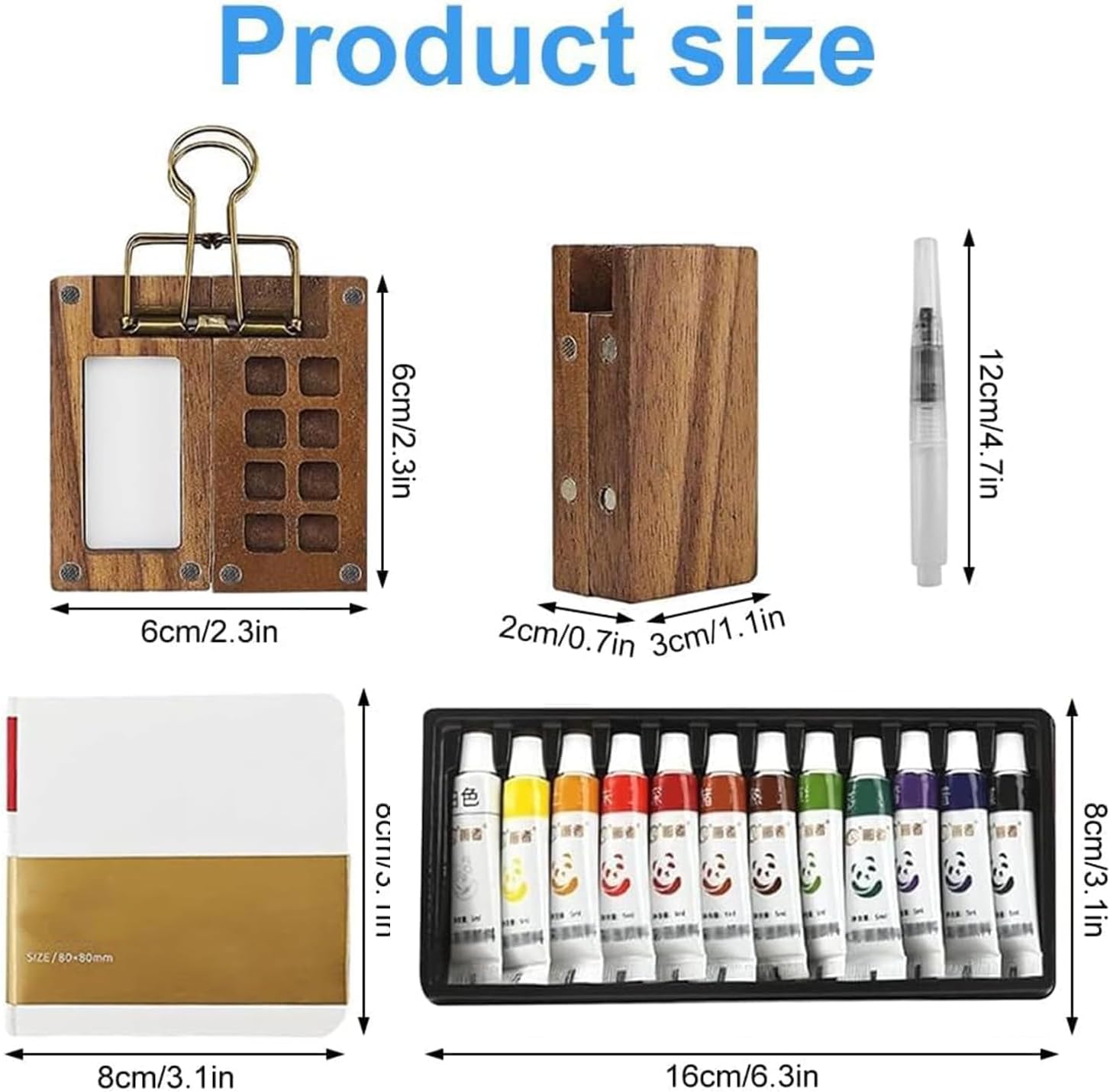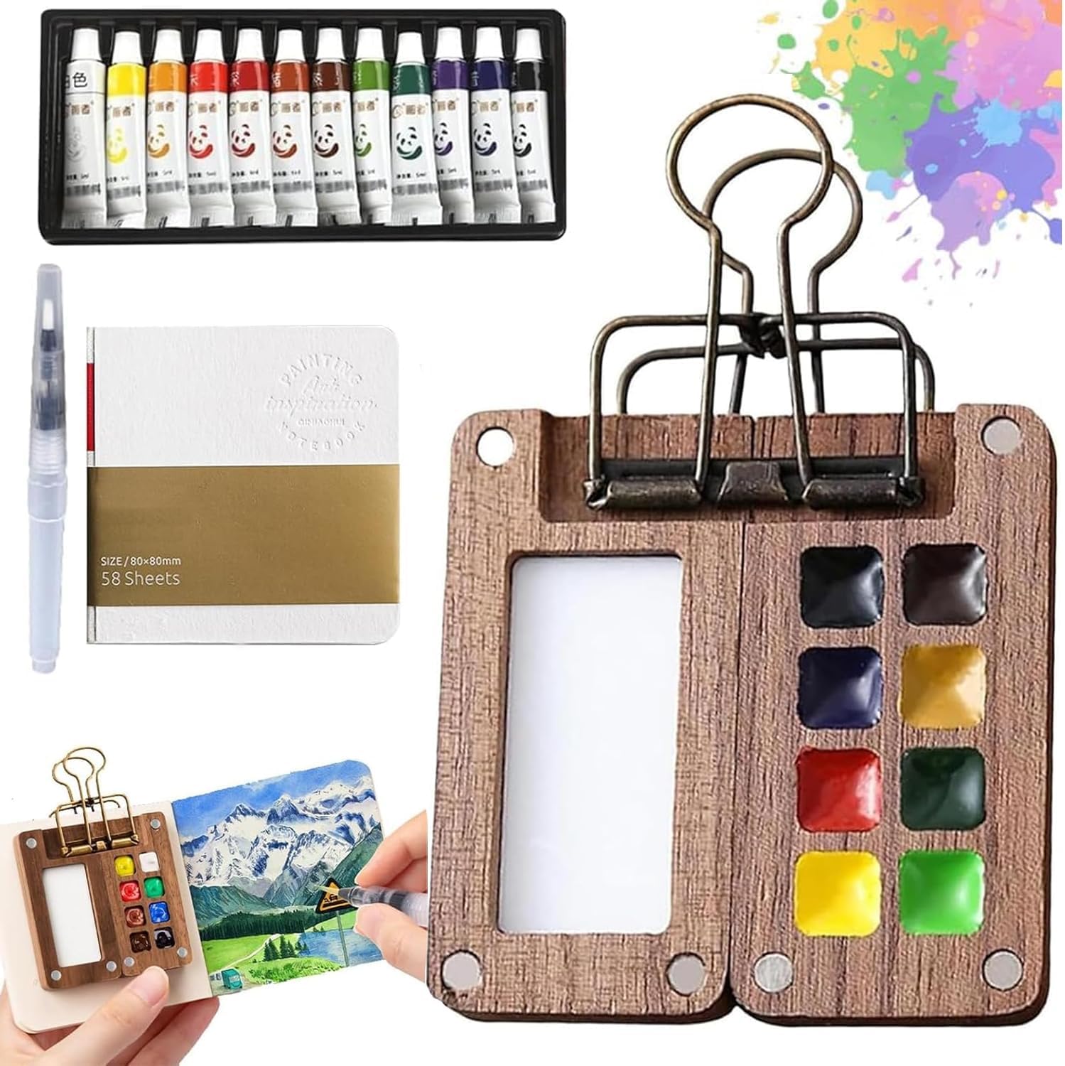 - Mini Aquarell Set:Mini aquarell set enthält eine Walnussholzkulisse, 12 Wasserfarben, 1 Mal-Wasserpinsel, ein tragbares Skizzenbuch und einen Metallclip. Diese pocketartist travel set hilft ihrer kreativität zu entfesseln und gleichzeitig ruhige momente zu schaffen, was sie zu einem begleiter für künstlerischen ausdruck macht, die sich sehr gut für reisen und skizzieren und malen im freien eignet.