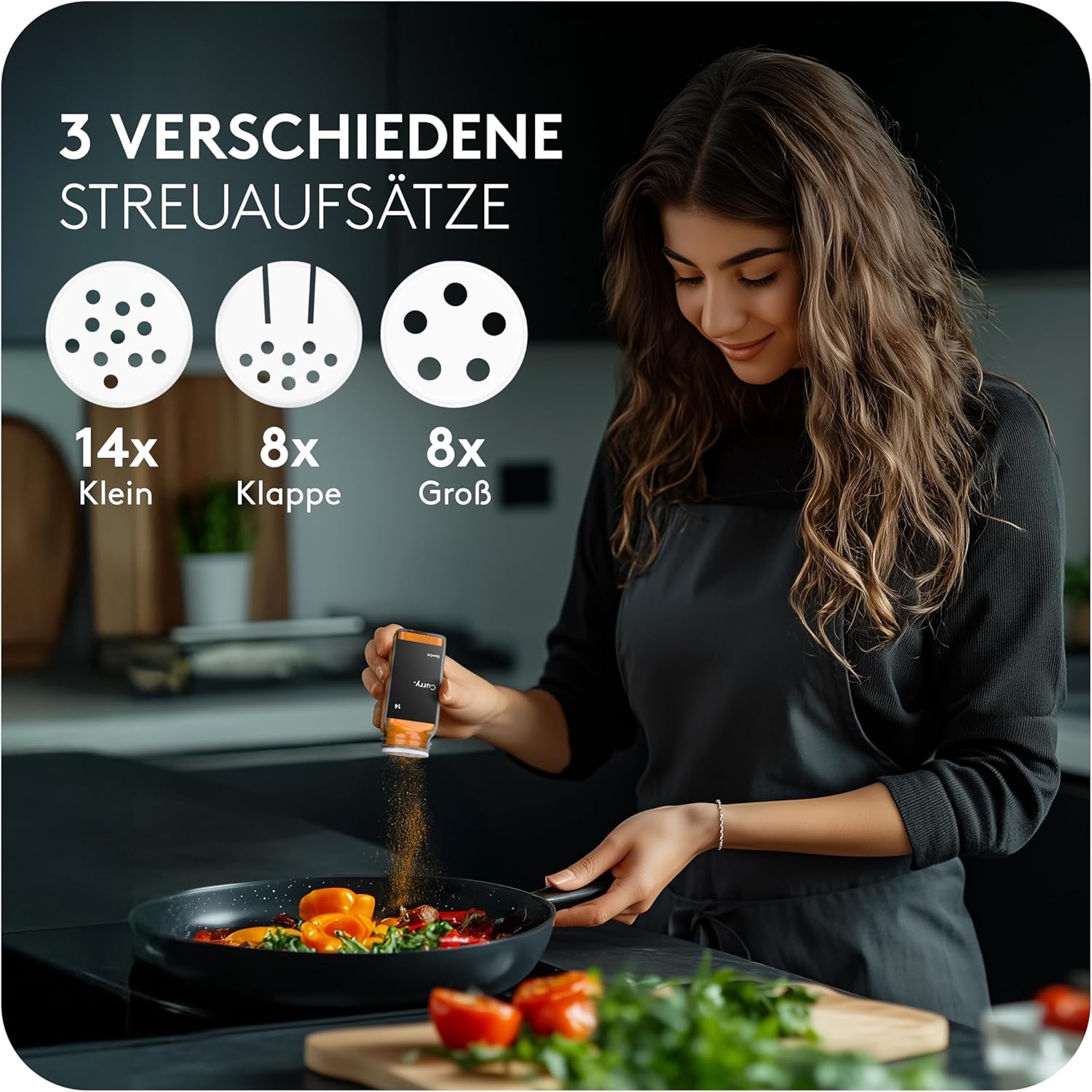 - 🌿 LANGLEBIGE GEWÜRZE – Unsere Deckel in Edelstahloptik mit hochwertigen Streueinsätzen ermöglichen dir eine besonders lange Aufbewahrung deiner Gewürze. Und das Dank geprüfter Inhaltsstoffe 100% sicher!