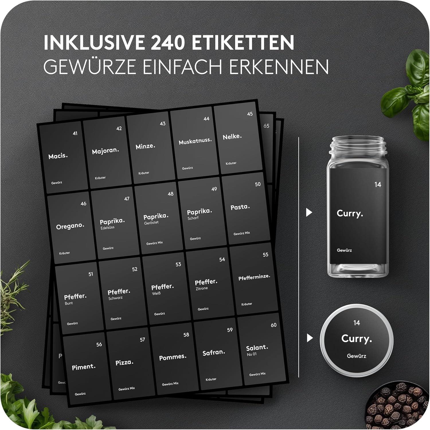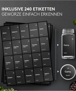 - 🌿 240 WASSERFESTE ETIKETTEN – Unsere Etiketten designed in Germany sind 100% wasserfest und es sind alle wichtigen Gewürze enthalten – Für perfekte Ordnung in deinem Gewürzschrank!